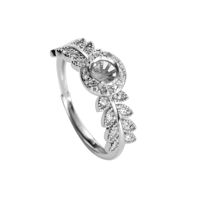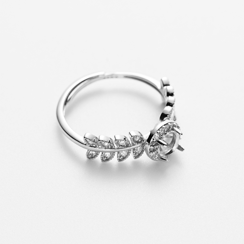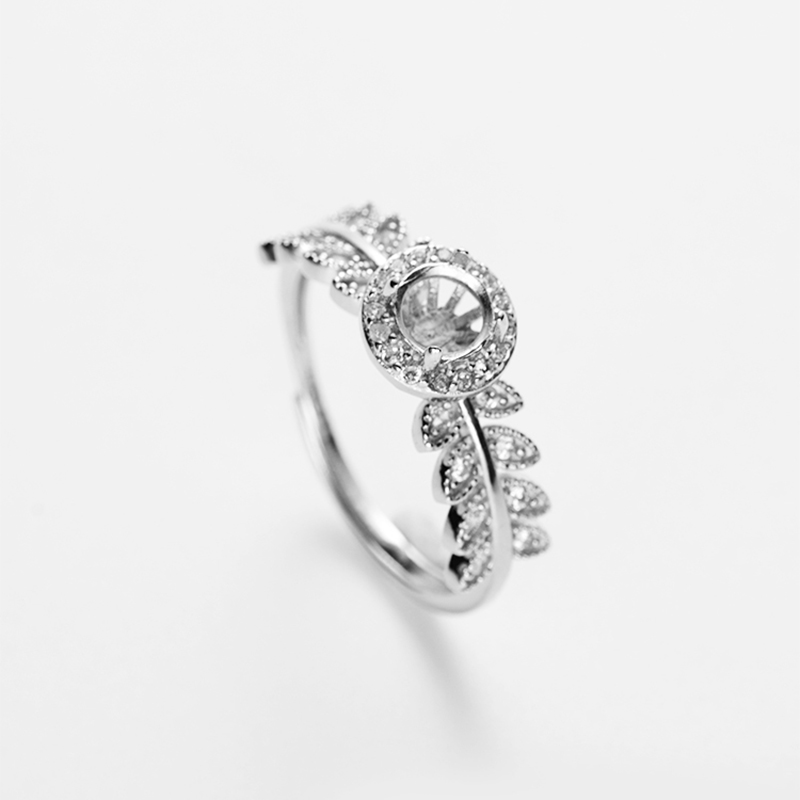 新款S925纯银戒托女diy手工未镶嵌玉石水晶开口圆形戒指空托 5*5