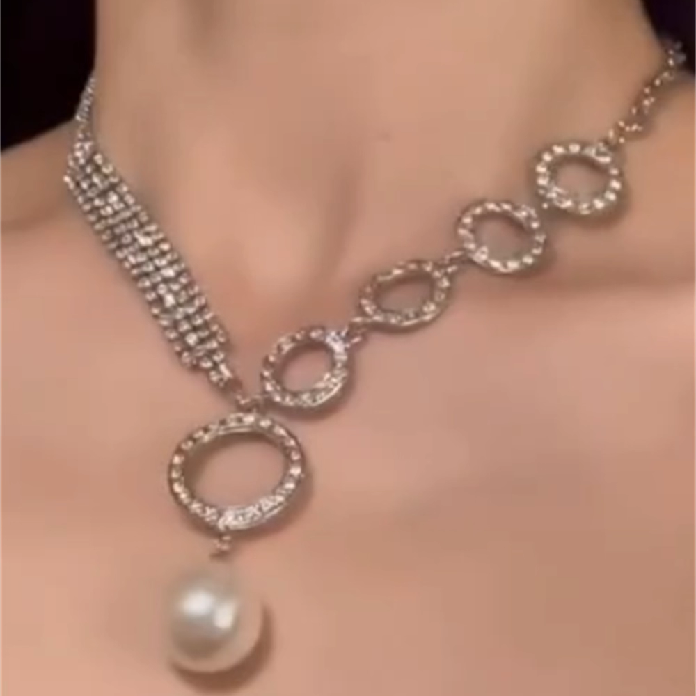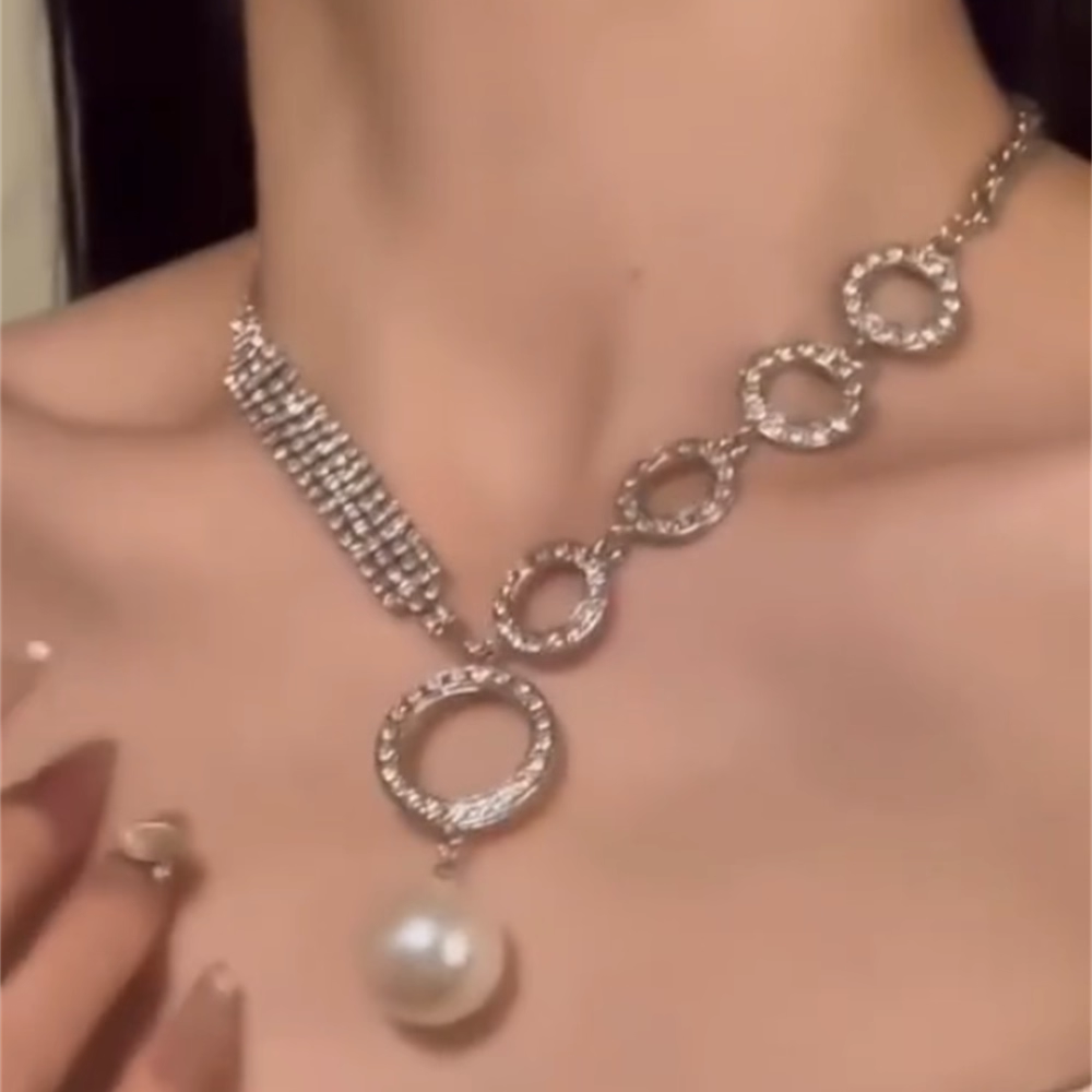 zoozmomo满钻圈圈珍珠吊坠项链女轻奢高级感颈链晚礼服配饰锁骨链