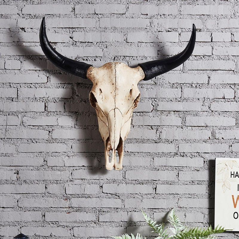 亚马逊树脂家居羊头骨壁挂复古办公室墙面装饰羊角挂件牛角装饰品