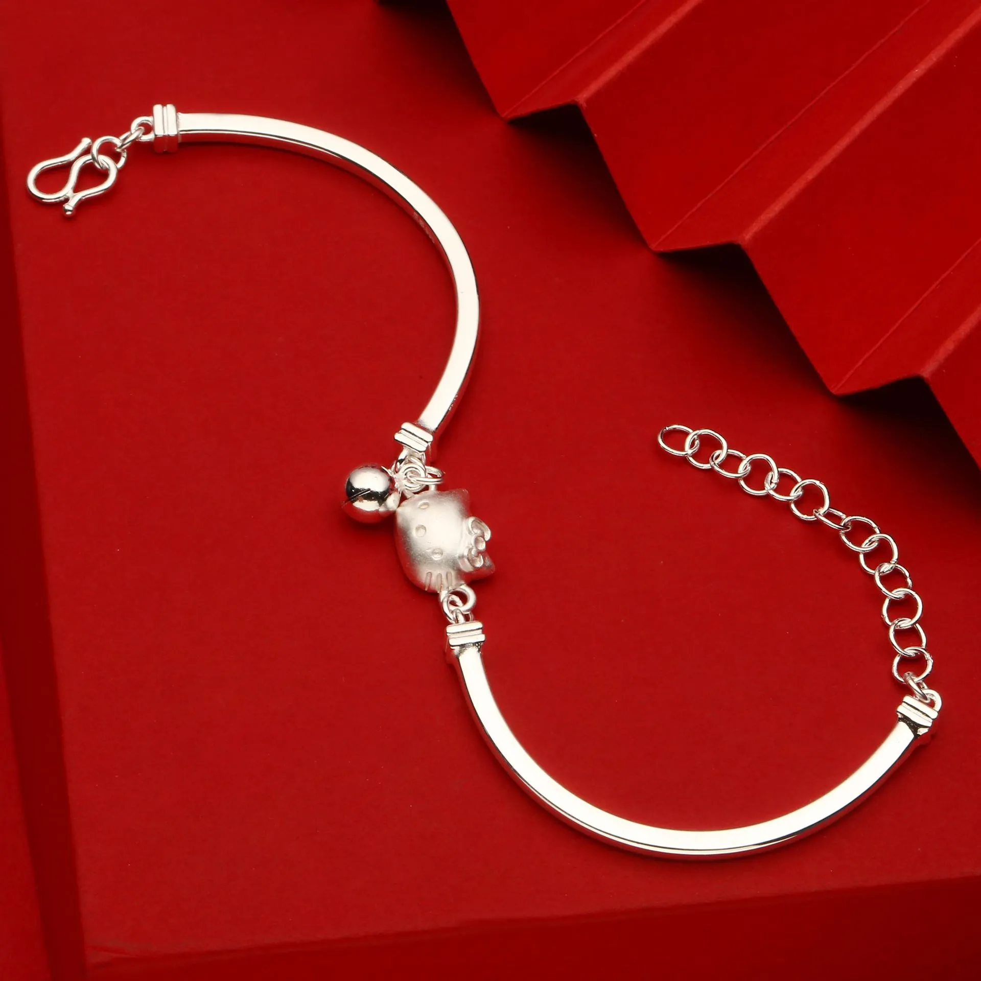7998号 足银999弯管猫咪KT猫手链清新纯银精工纯银直播爆款