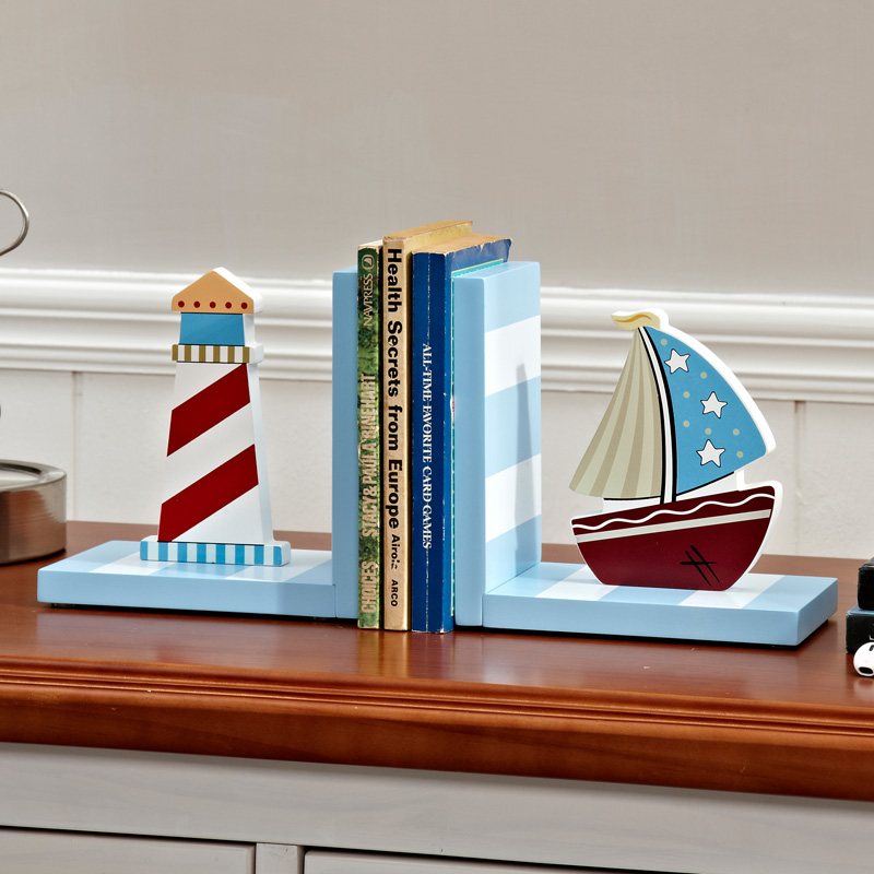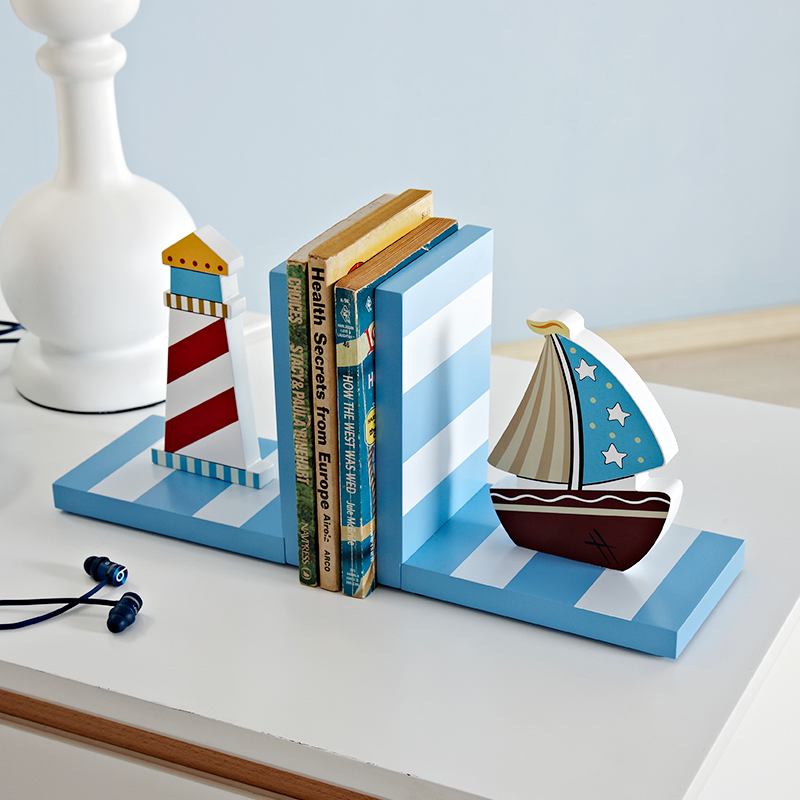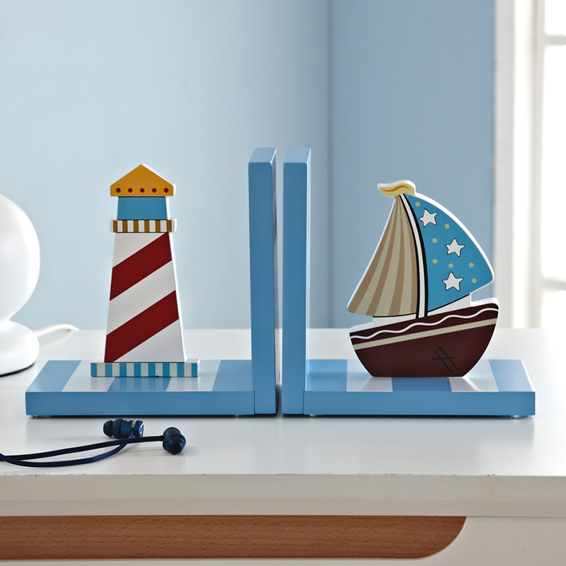 海洋创意书挡摆件帆船书立书靠儿童房家居装饰品卡通书籍收纳书档