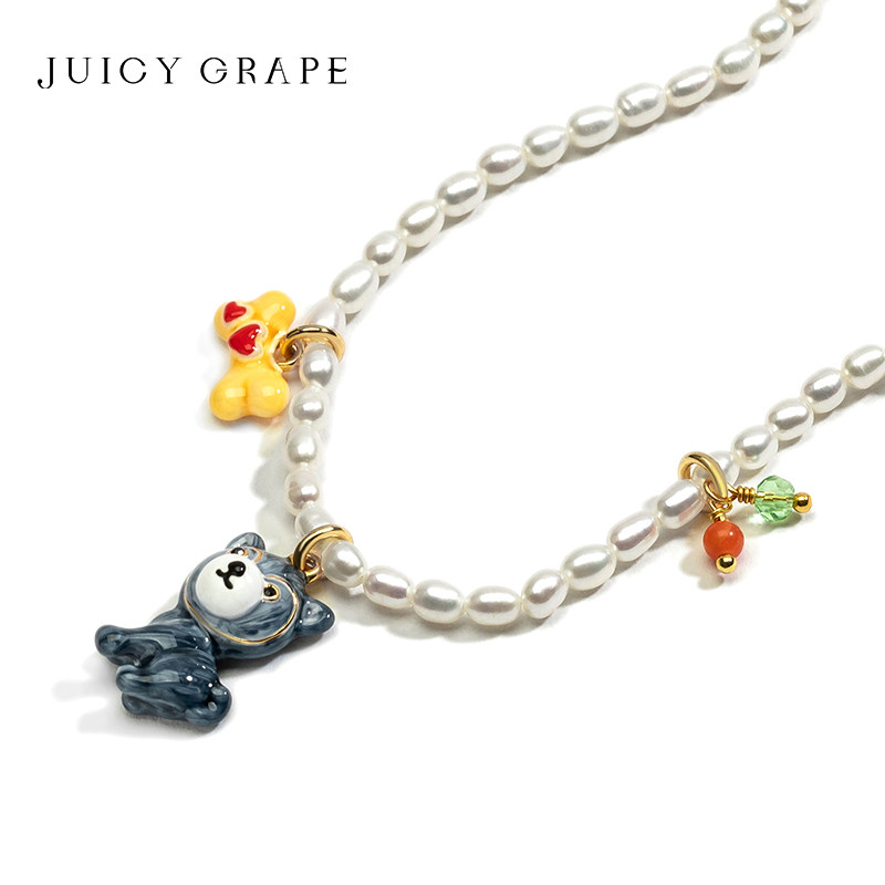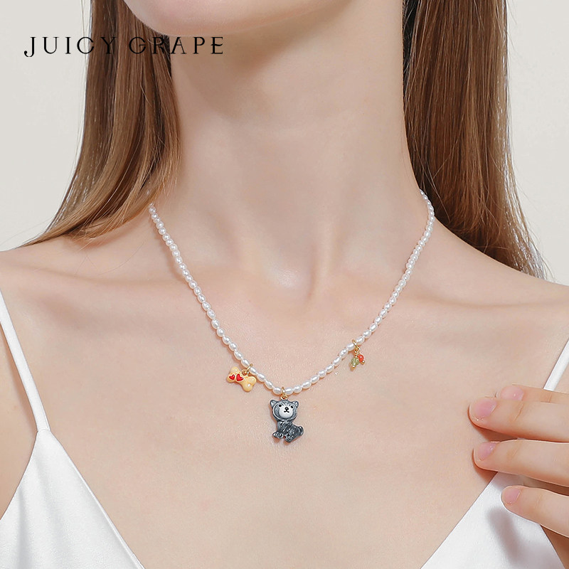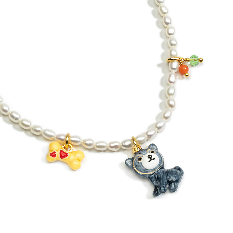 项链女小众设计感高级原创可爱动物小狗饰品淡水珍珠时尚款锁骨链