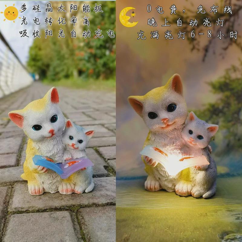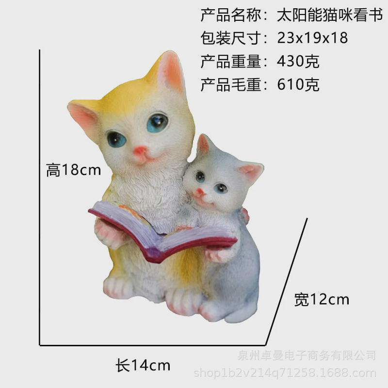 新款太阳能灯猫咪亮灯户外动物树脂庭院看书草坪花园装饰摆件