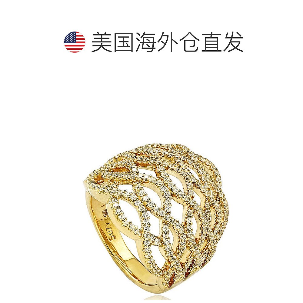 自营 Suzy Levian 镀金纯银密钉方晶锆石 5 排无限戒指 - 粉红色