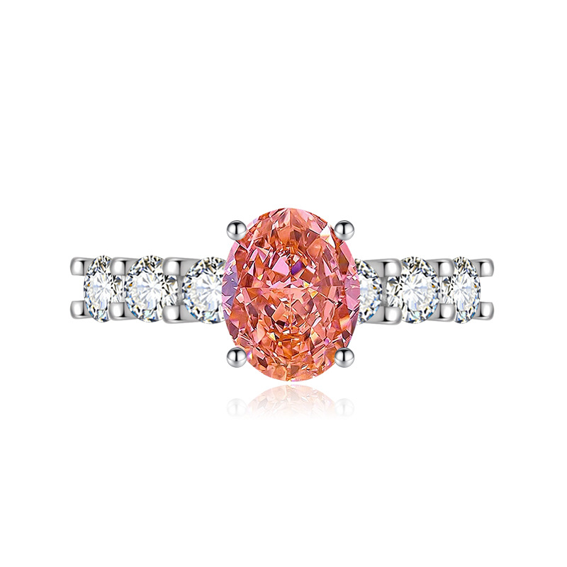 奢华高端设计新款冰花切戒指女紫色高碳钻椭圆形指环饰品百搭精致