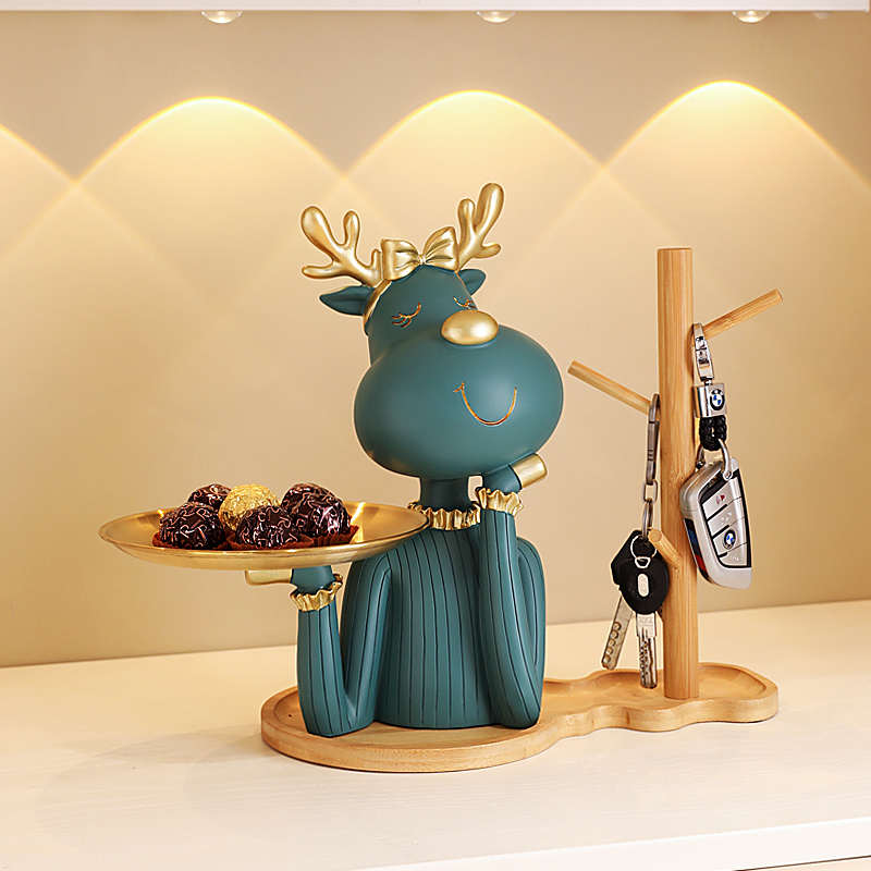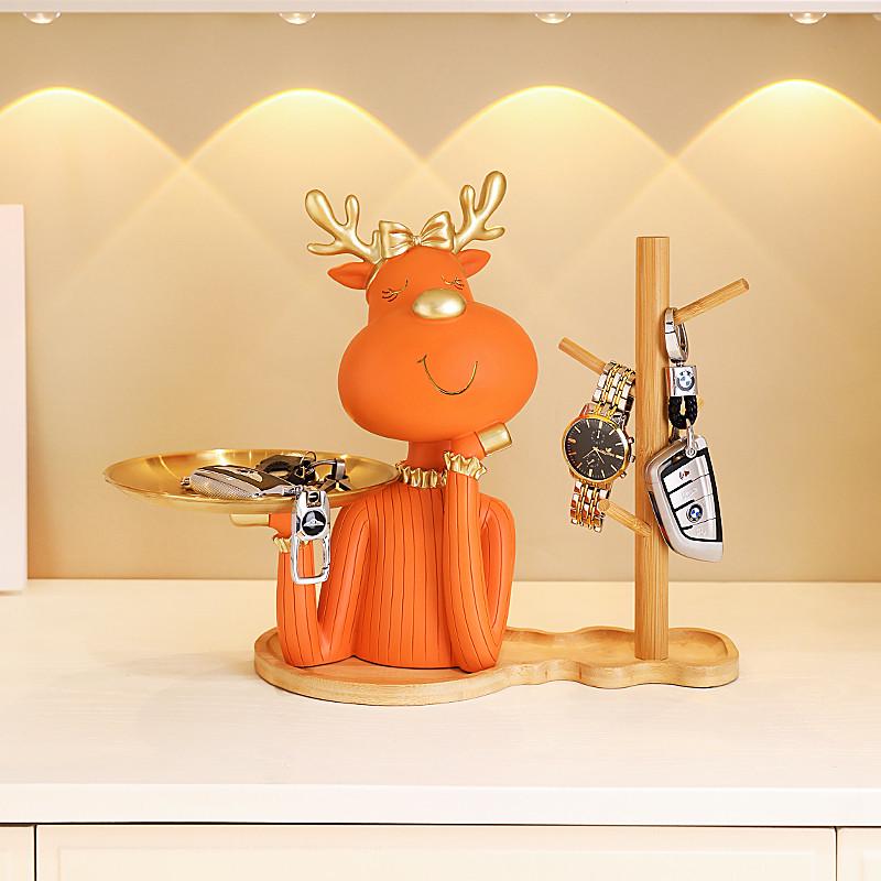 轻奢鹿托盘客厅鞋柜乔迁新居礼品门口入户钥匙收纳玄关桌面摆件