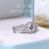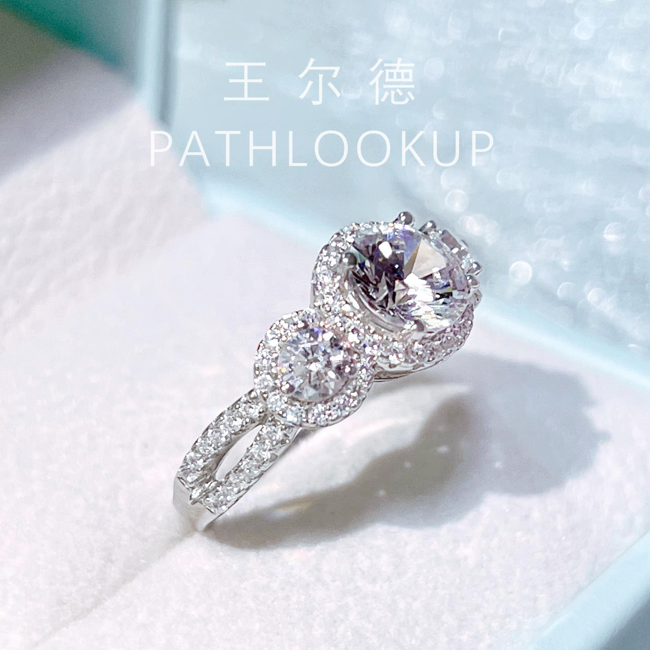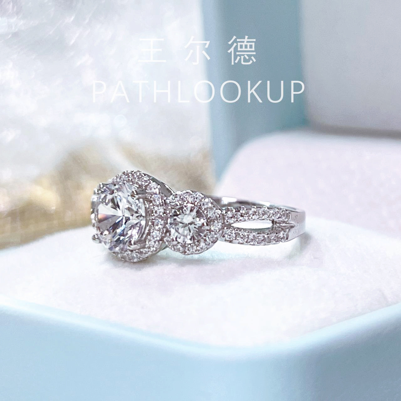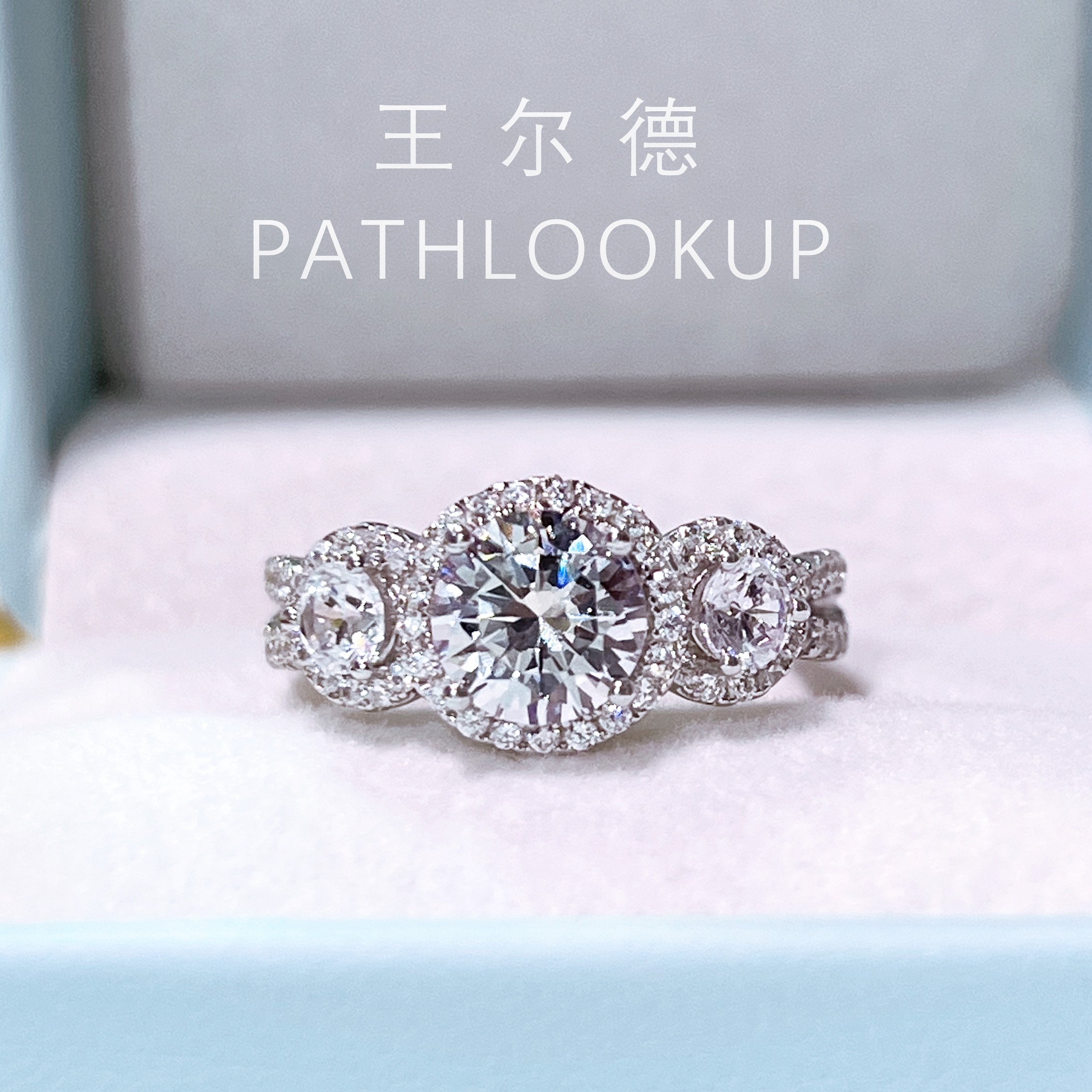 S925纯银满钻3石1.5克拉高碳钻石戒指女环环相扣豪华圆钻爆闪钻戒