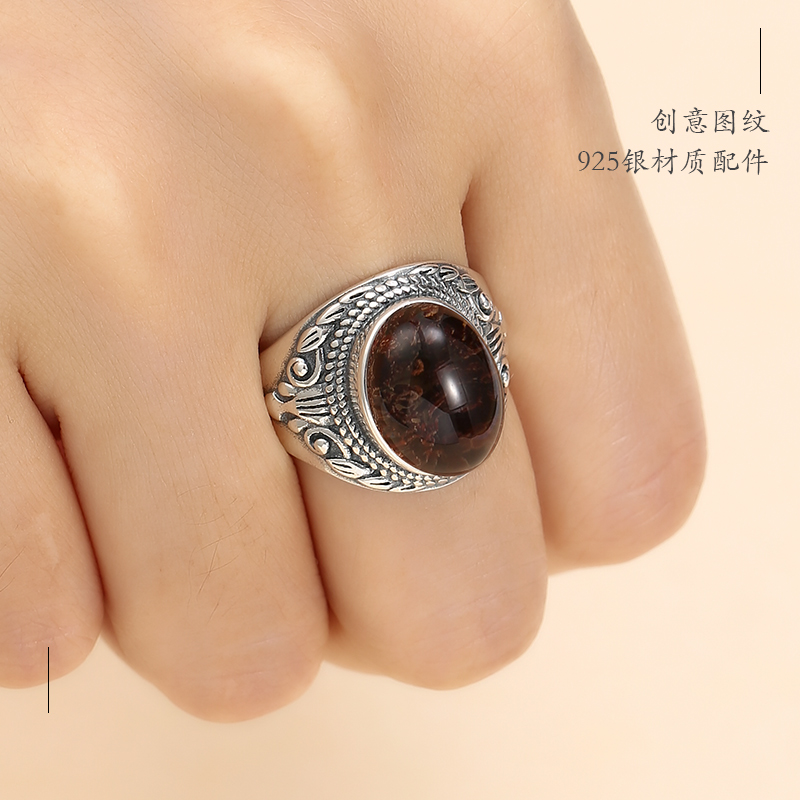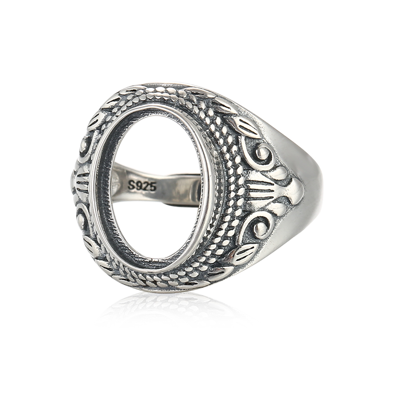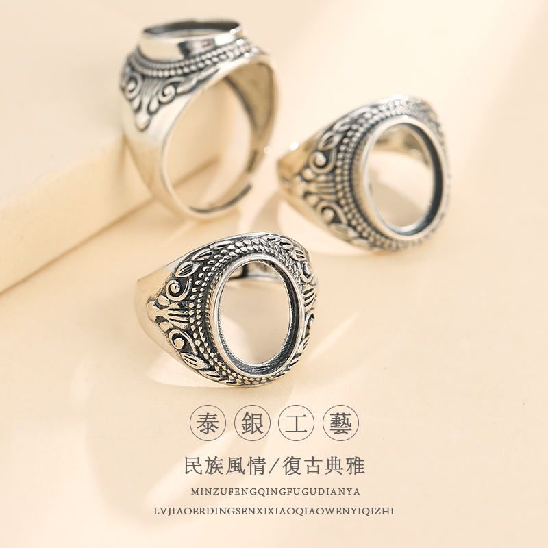 S925纯银戒指空托女镶嵌南红蜜蜡绿松石琥珀复古戒托空托9.5*13.5
