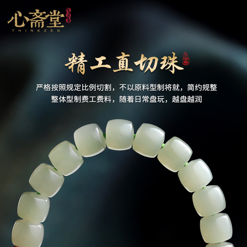 心斋堂【荷月】天然晴水和田玉手串女款玉石直切珠本命年新款手链