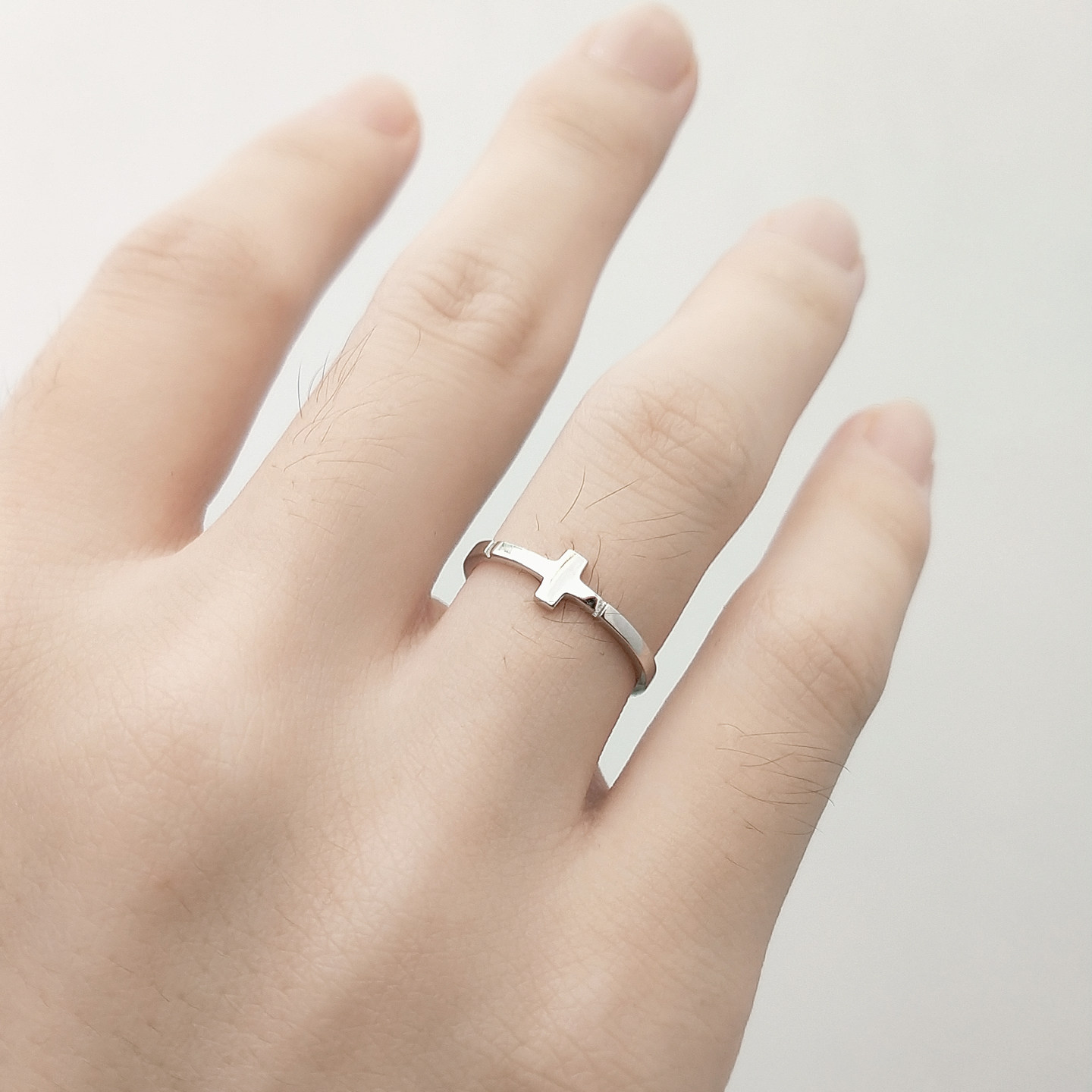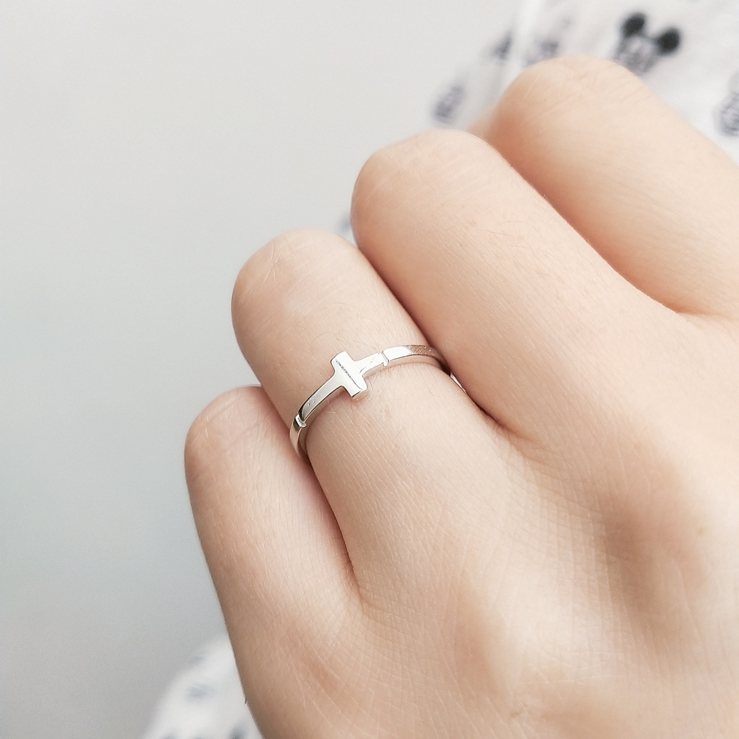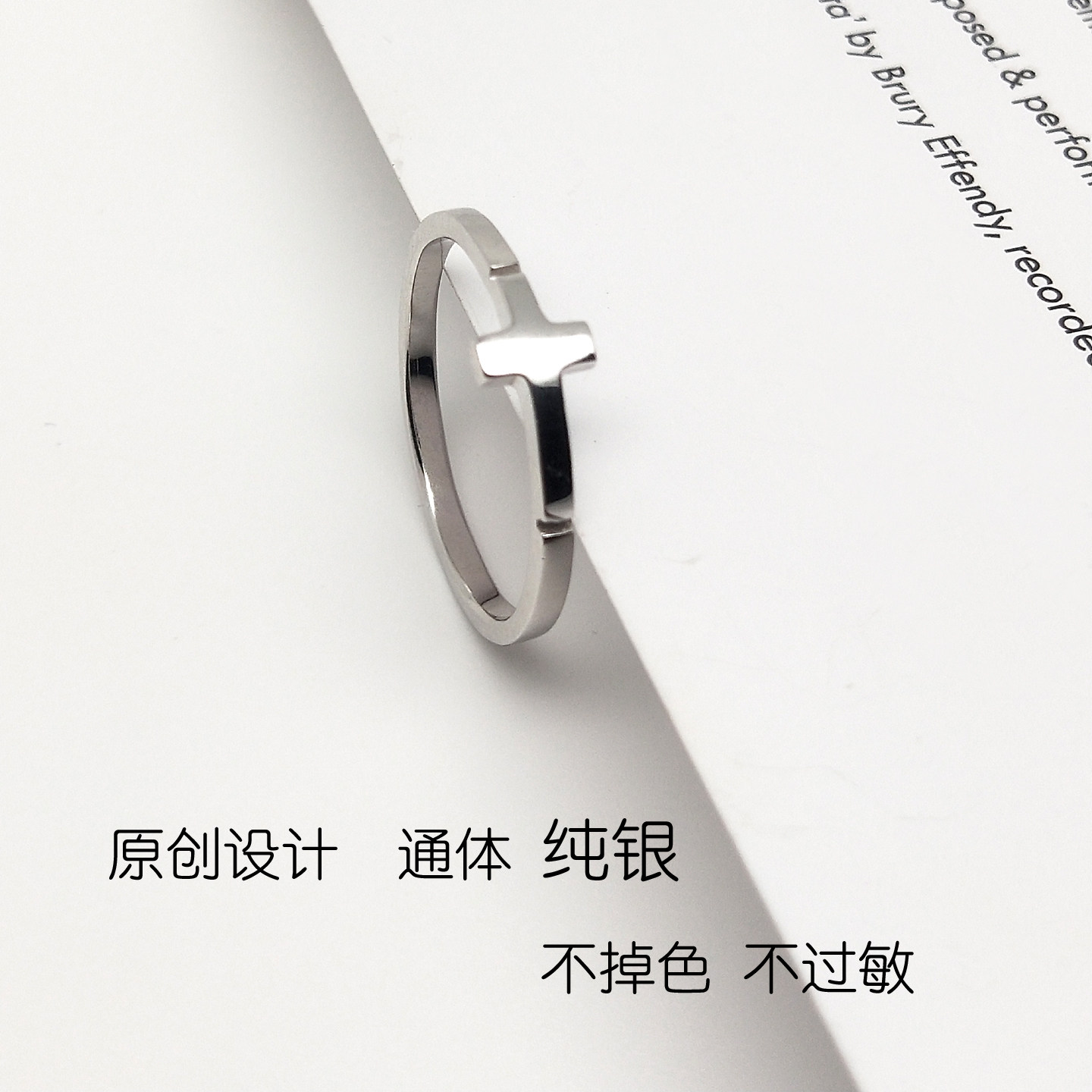 [集泰]简约十字架极细戒指女纯银s925清新冷淡风原宿原创设计中指