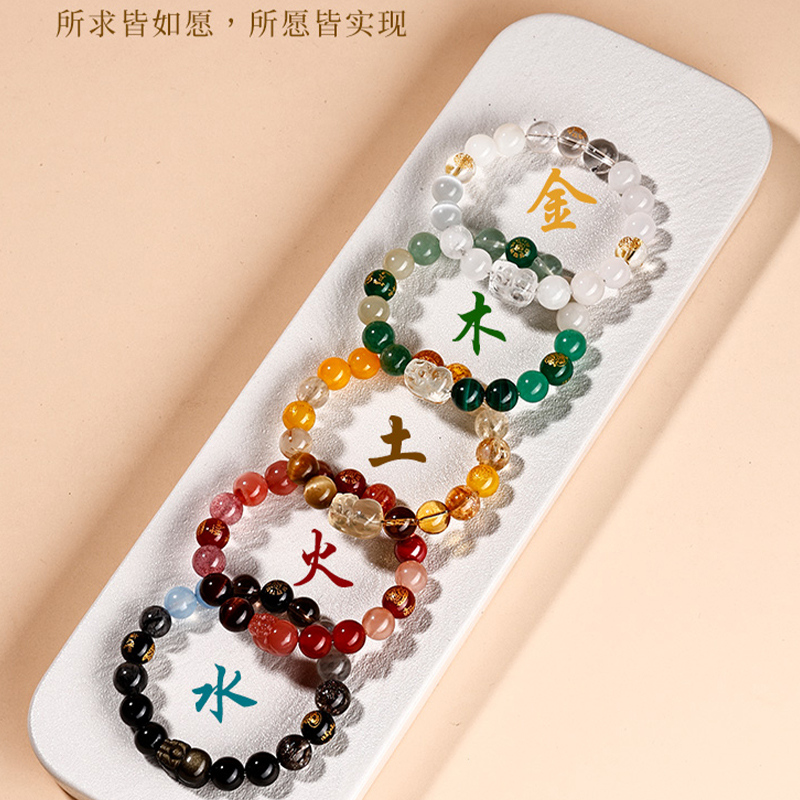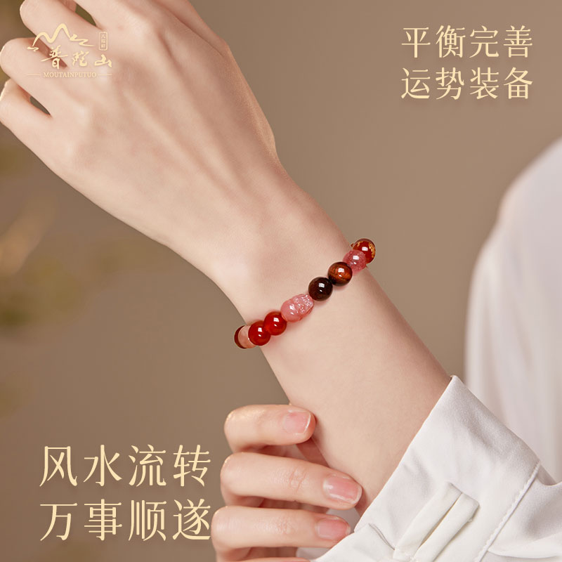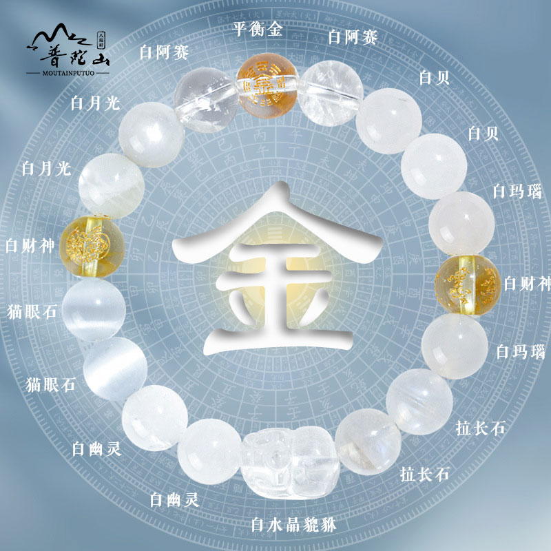 普陀山天然水晶手串五行补土护身符土黄色喜土手链貔貅招财聚宝