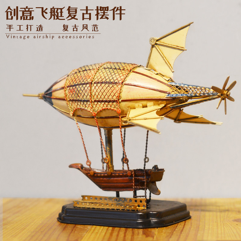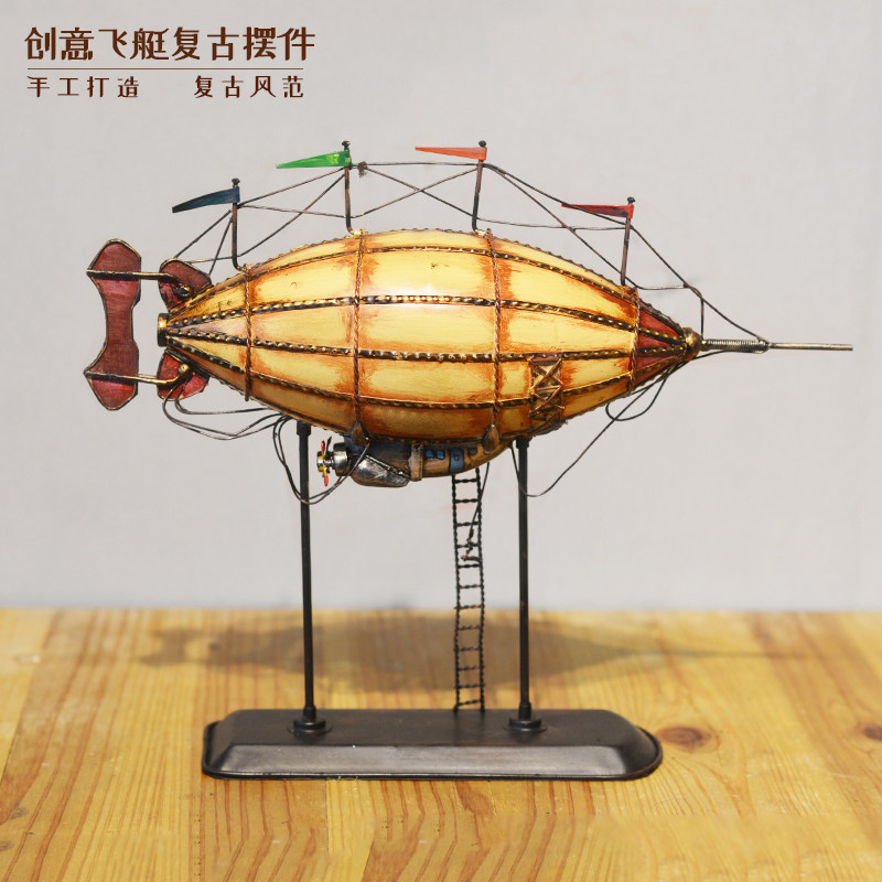复古铁艺飞艇飞船模型装饰品摆件客厅书房酒吧商场工艺品桌面摆设