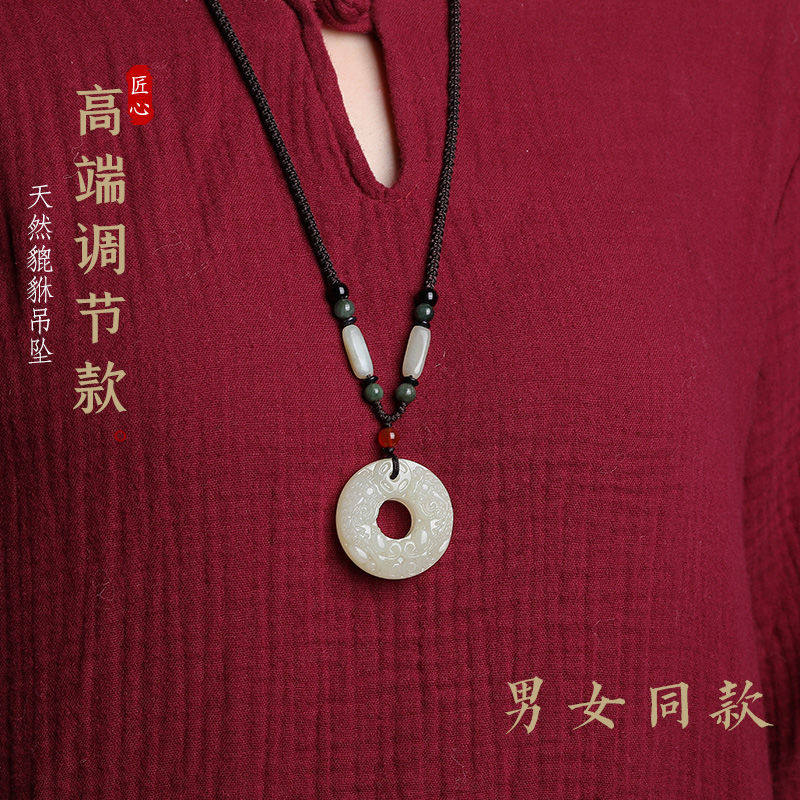 天然和田玉平安扣吊坠男女款玉坠双面貔貅玉佩玉石玉坠项链毛衣链