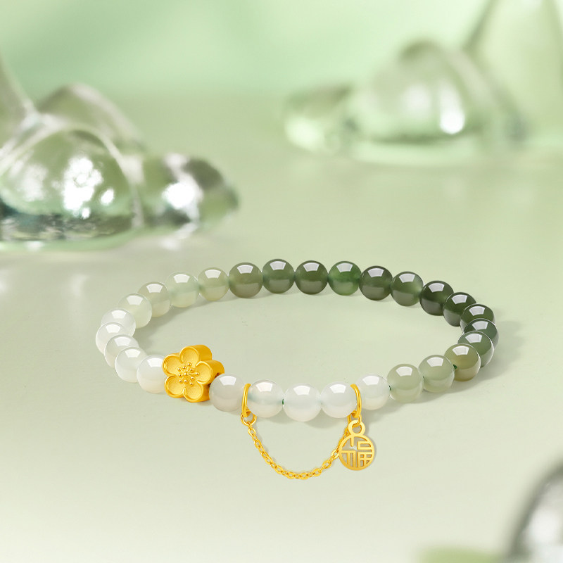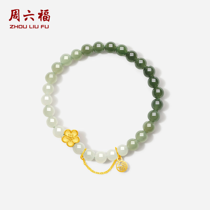 周六福珠宝黄金金镶玉手链和田青玉桃花福字牌手串手饰圣诞礼物
