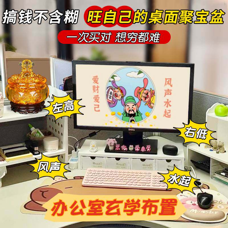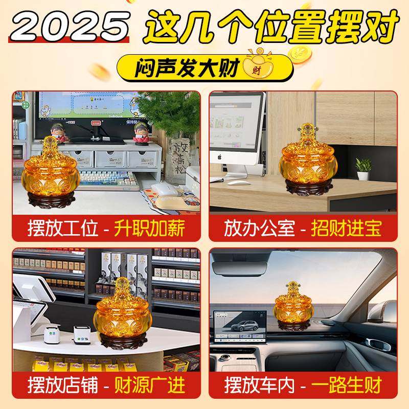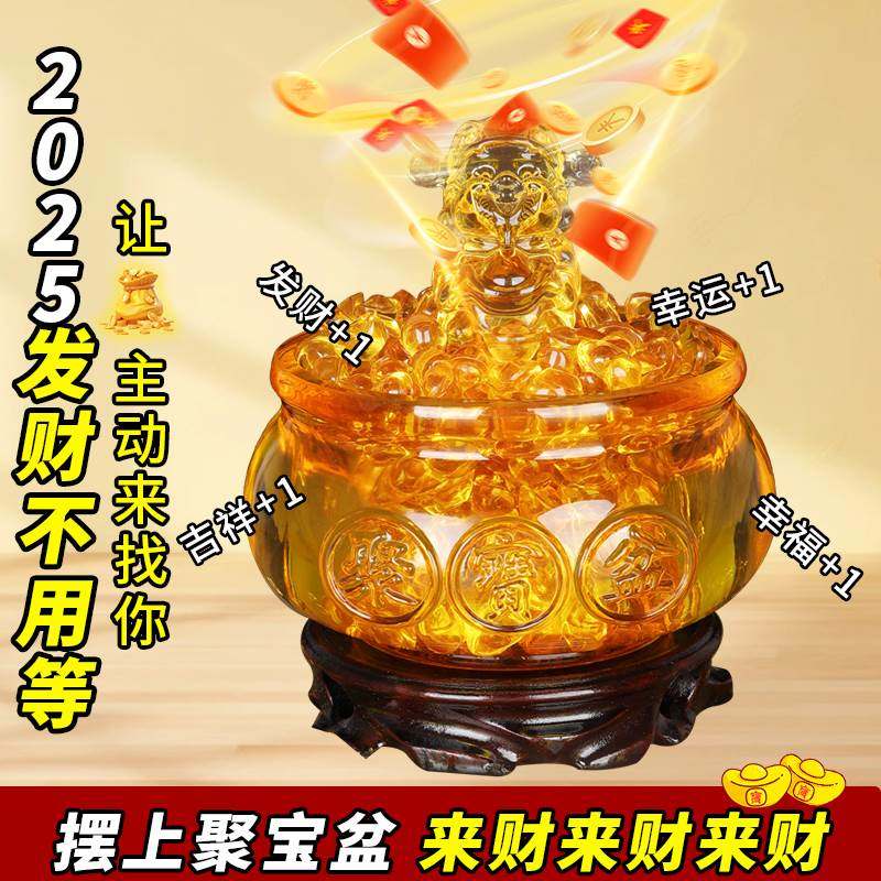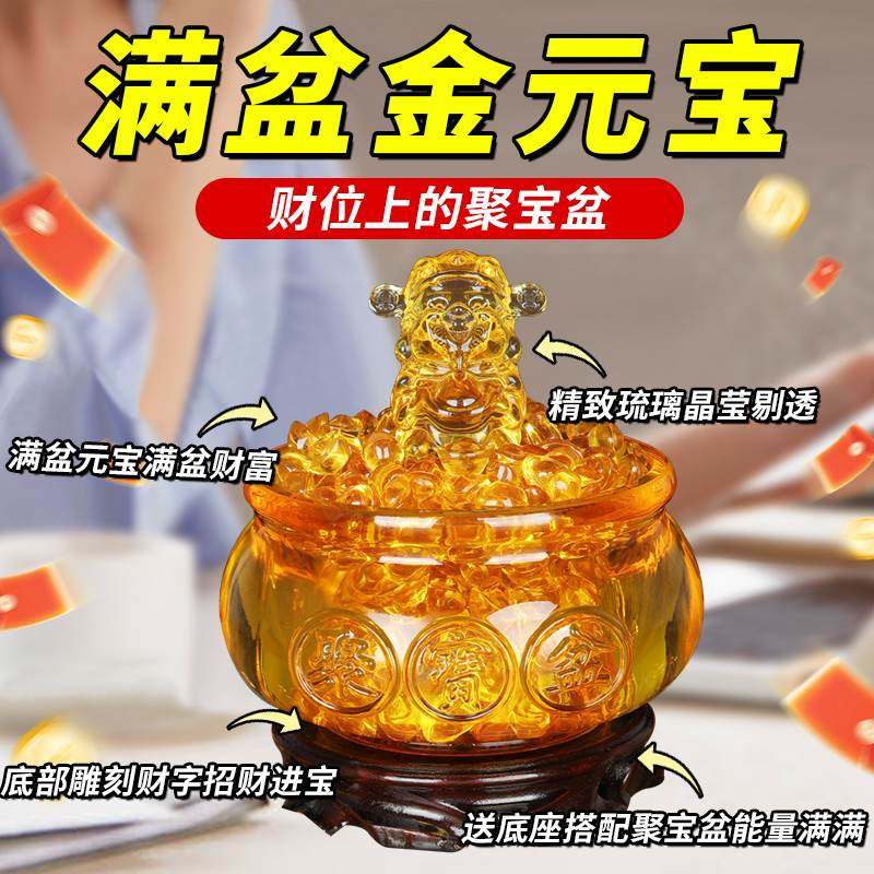 黄水晶聚宝盆摆件招财聚财金黄色琉璃元宝家居摆设开业乔迁小礼品