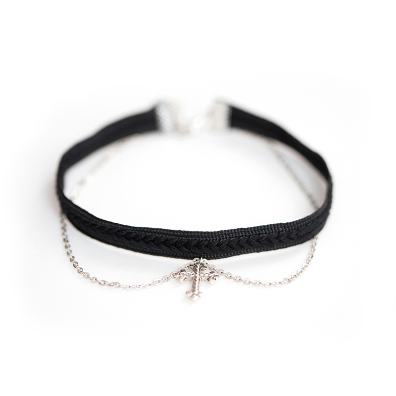 Pink Unicorn原创十字架吊坠choker项圈女黑色复古锁骨链短款个性
