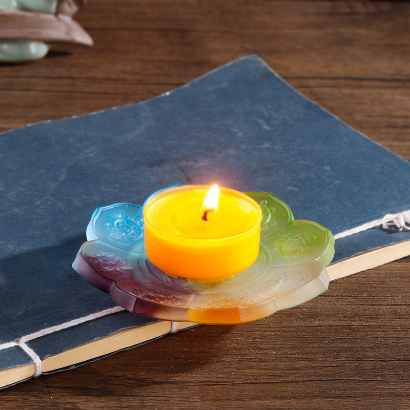 荷叶碟古法真琉璃多功能供果碟贡碟香碟香盘供盘香座八吉祥小底座