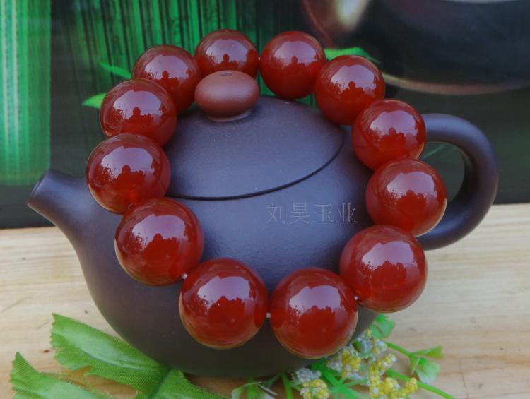 四川凉山南红玛瑙巴西玛瑙男士手链18厘珠霸气手串特蜀黍