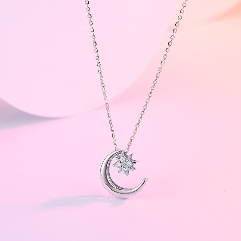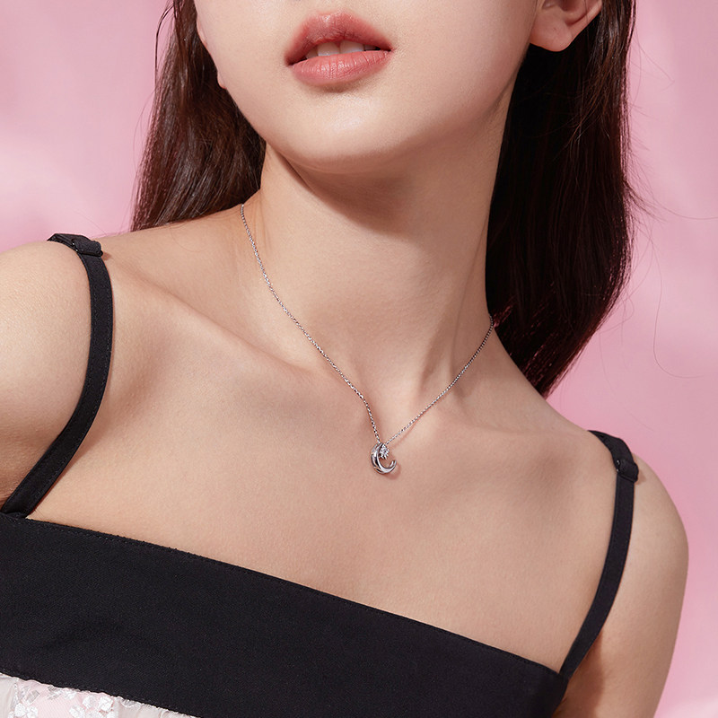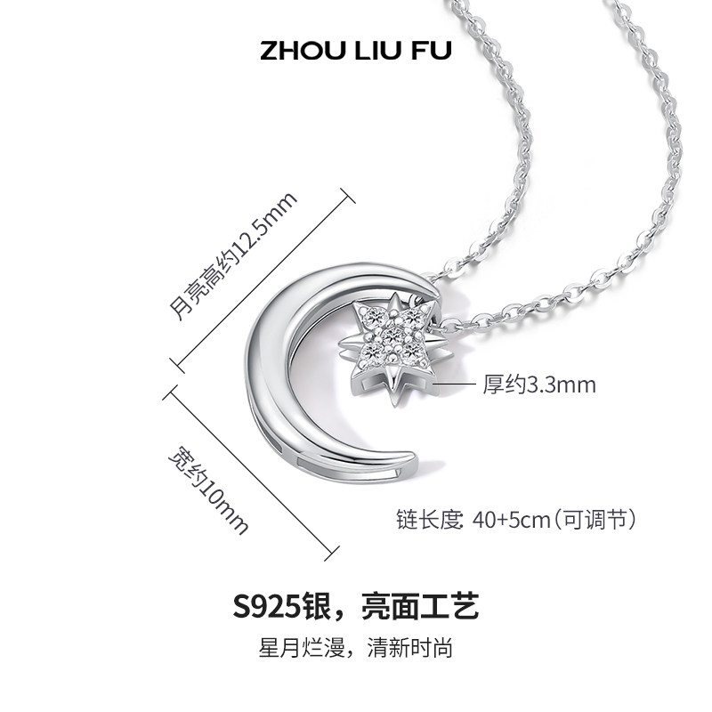 周六福星月银项链女S925银吊坠链坠百搭锁骨链圣诞礼物