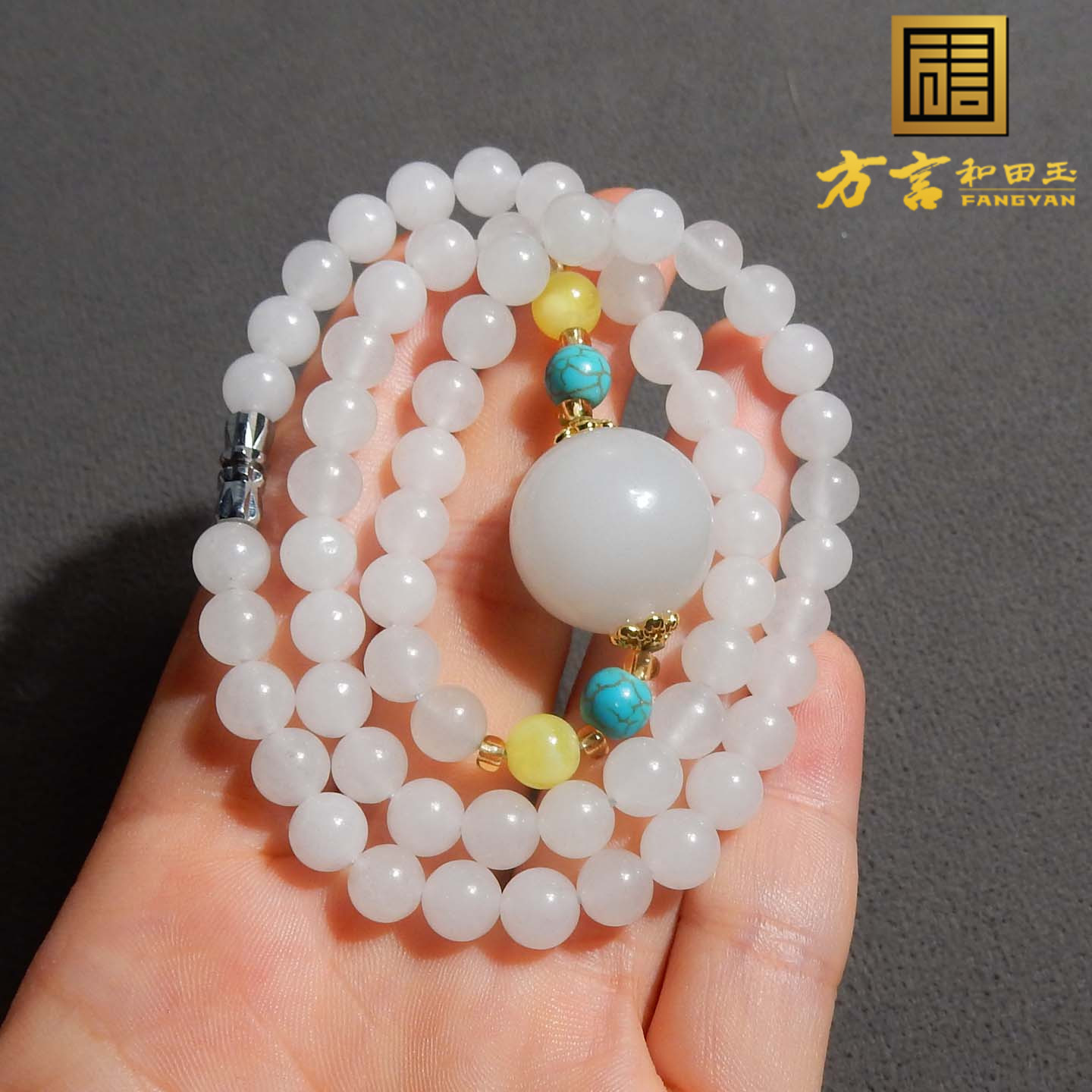 大热方言精品和田玉特惠佩戴新疆佩戴级金丝玉圆珠7mm项链s10