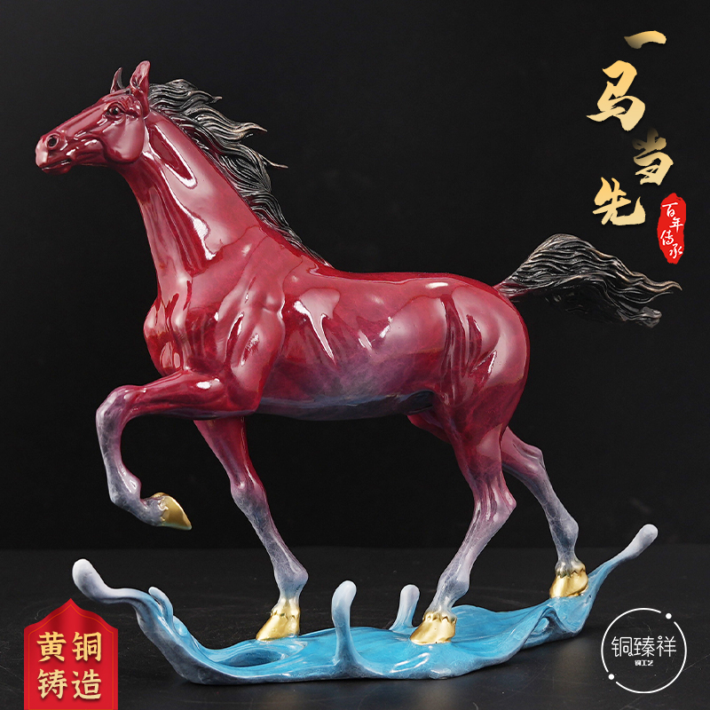 马上有钱铜马摆件工艺品彩铜家居客厅书房桌面黄铜装饰品玄关摆放
