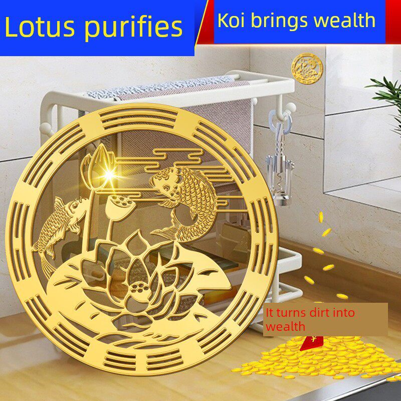 鲤鱼荷花画浴室荷花锦鲤画荷花净化贴纸厨房抹布厕所鞋柜洗衣机