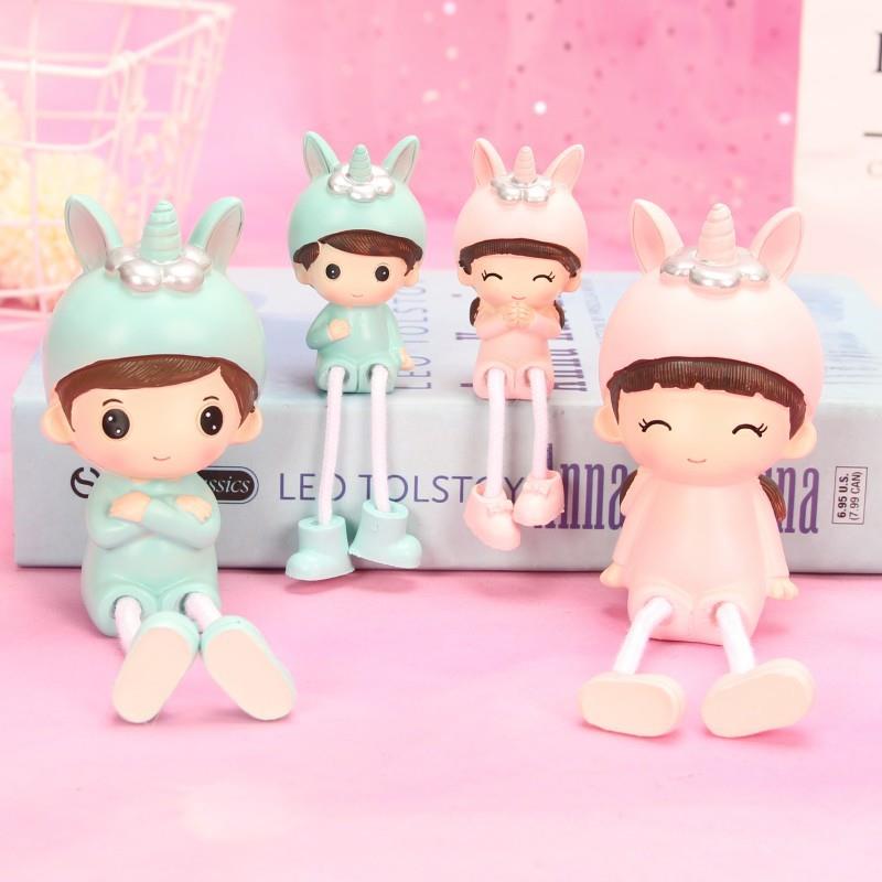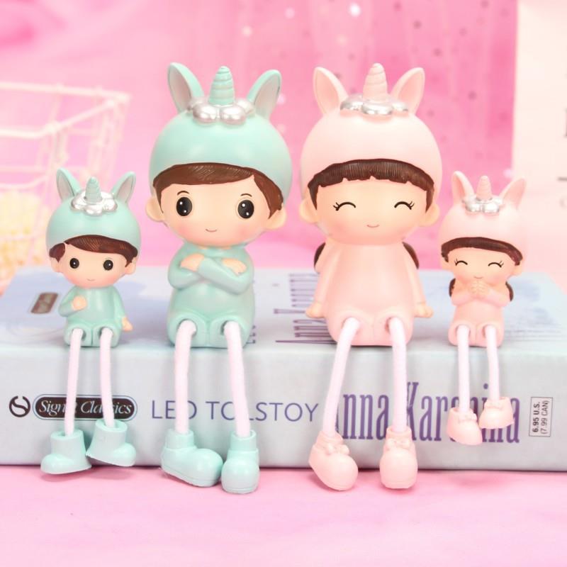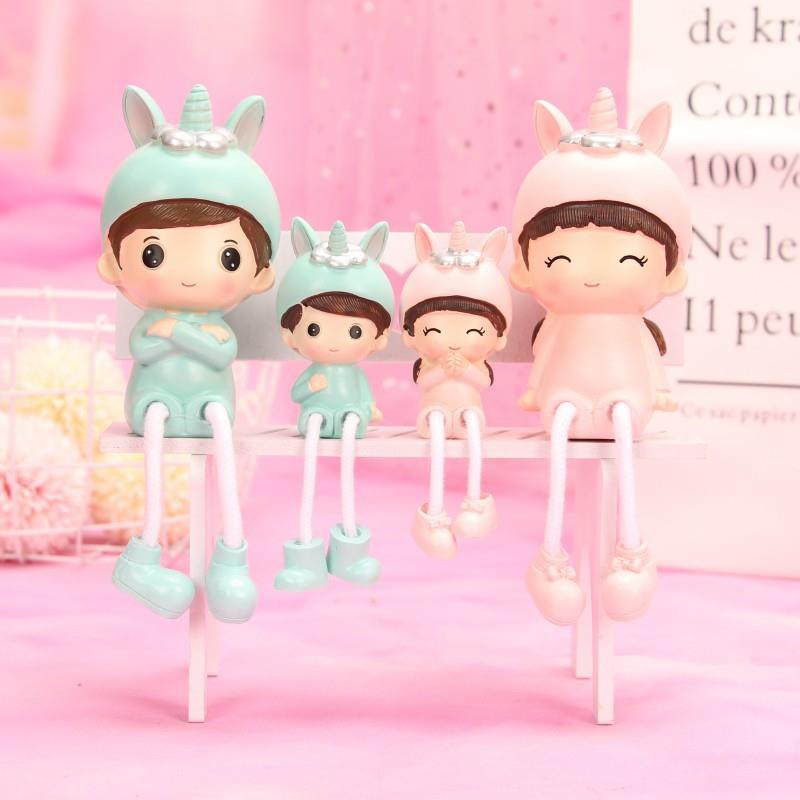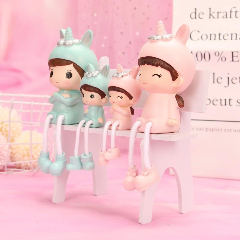 新款直销一家四口可爱独角帽树脂吊脚摆件装饰家居酒柜客厅送朋友