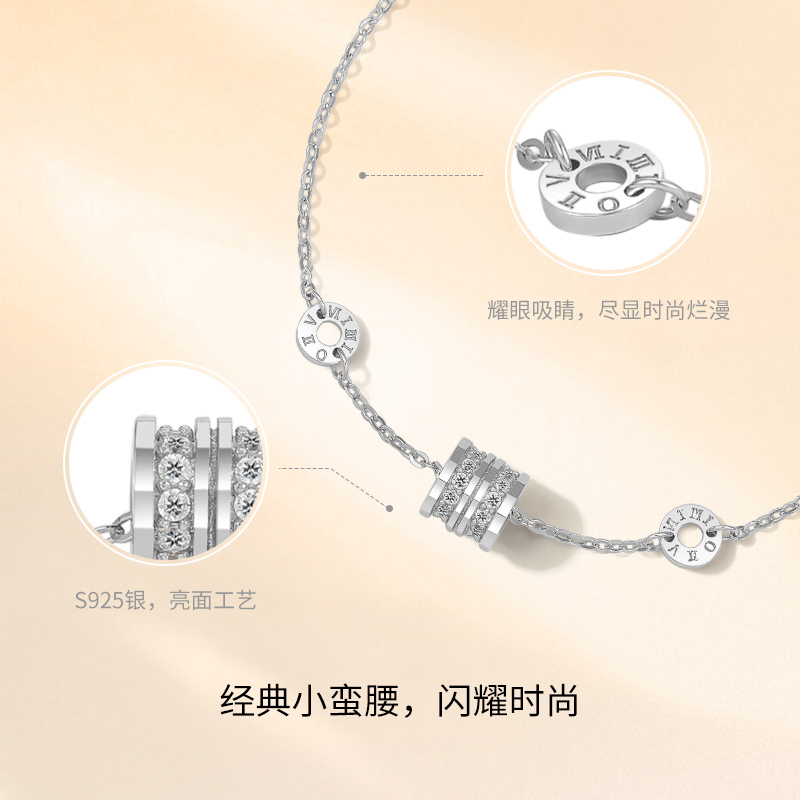 周六福纯银钻光小蛮腰手链女款轻奢小众精致感圣诞礼物送女友