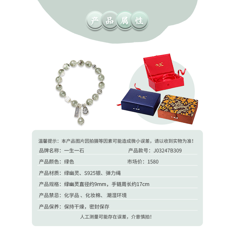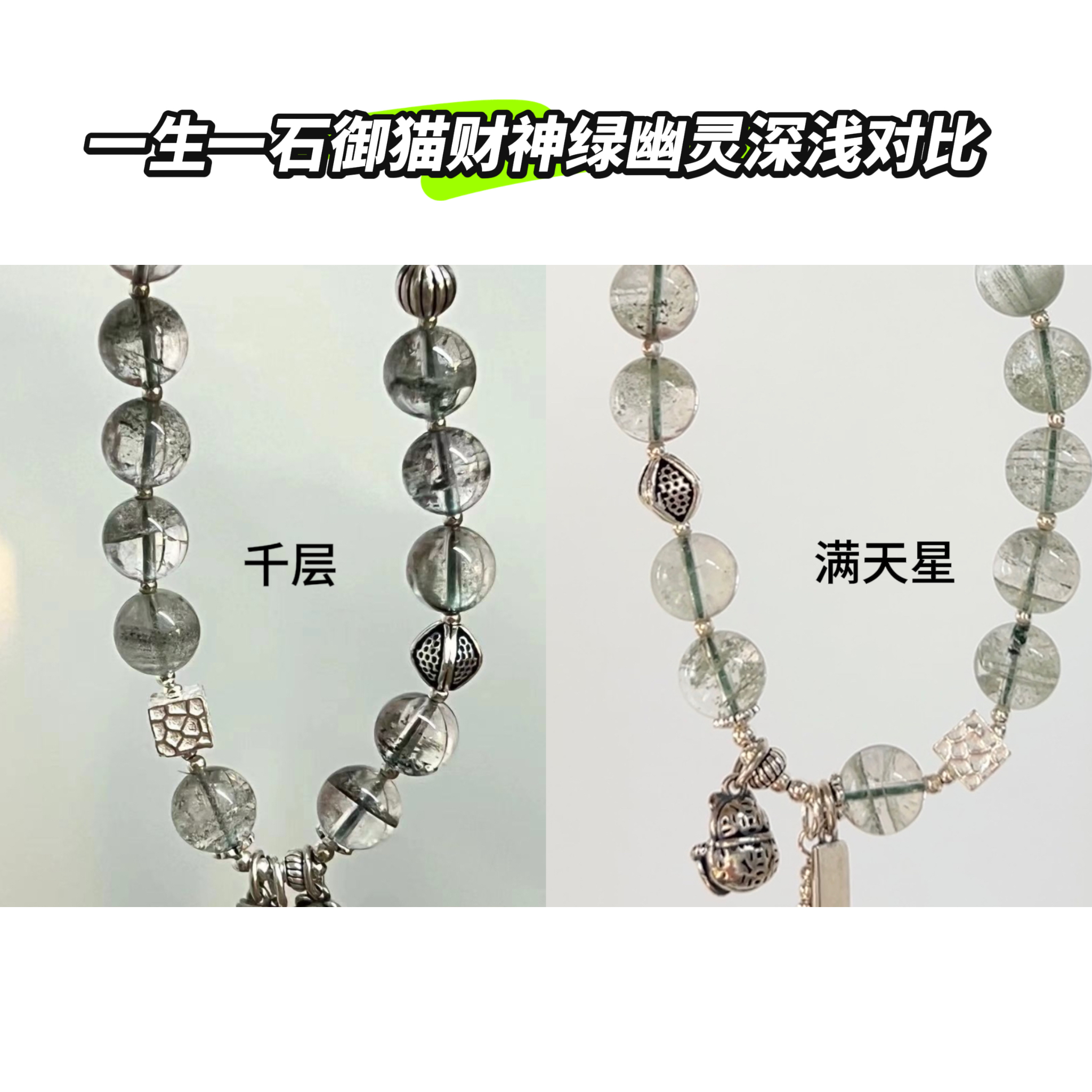 一生一石天然绿幽灵手链女礼物财猫S925银小众清新闺蜜款女春夏