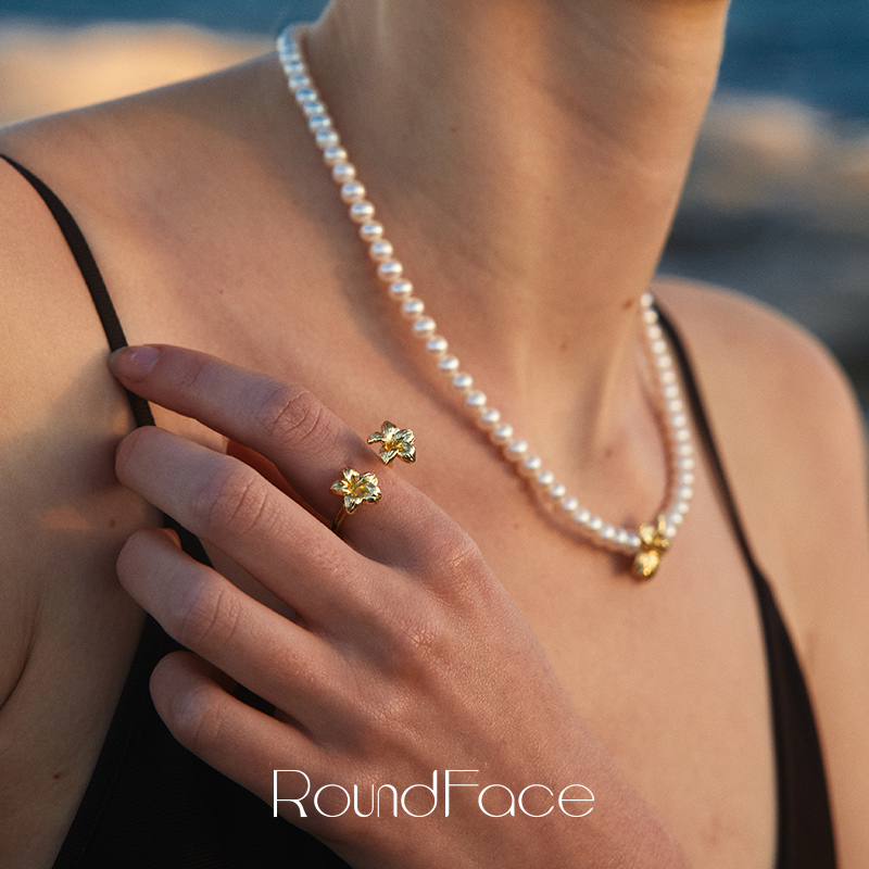 RoundFace 金色法式复古花朵开口戒指银镀18k金 小众原创度假感