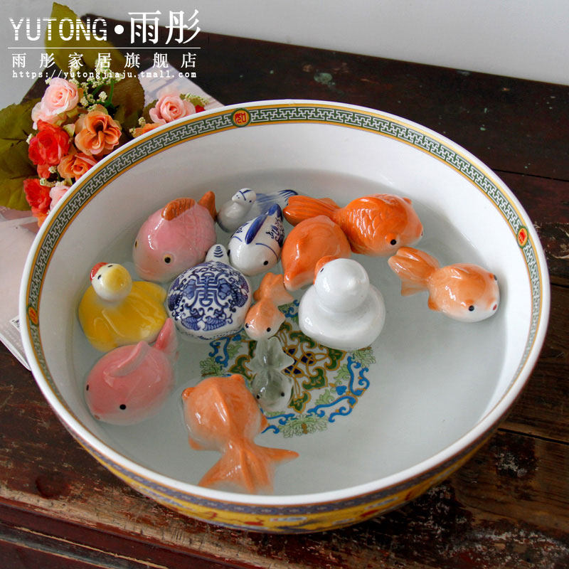 雨彤【鱼游世界】陶瓷鸭子乌龟小金鱼摆件水中可漂浮家中鱼缸可爱