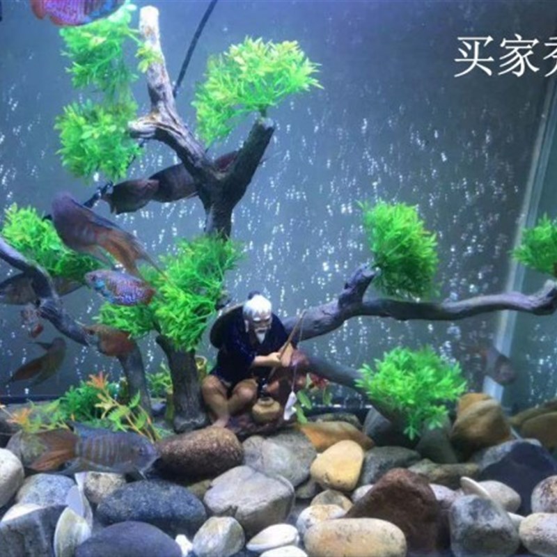 假山盆景鱼缸造景陶瓷人物小摆件渔夫钓鱼姜太公坐翁装饰品工艺品