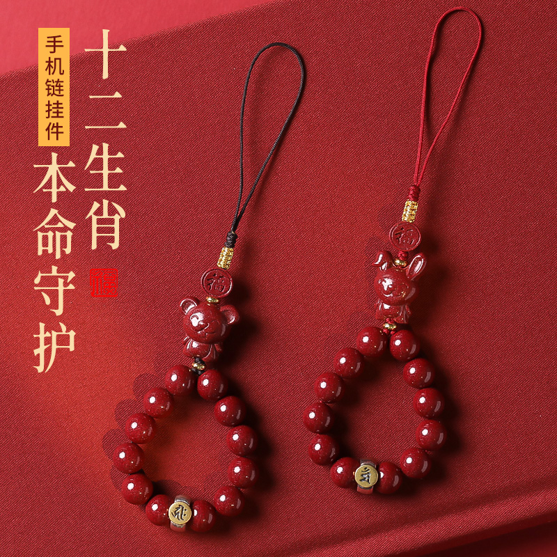 朱砂手机链十二生肖小挂饰本命年12挂坠精致手机吊坠符挂件女