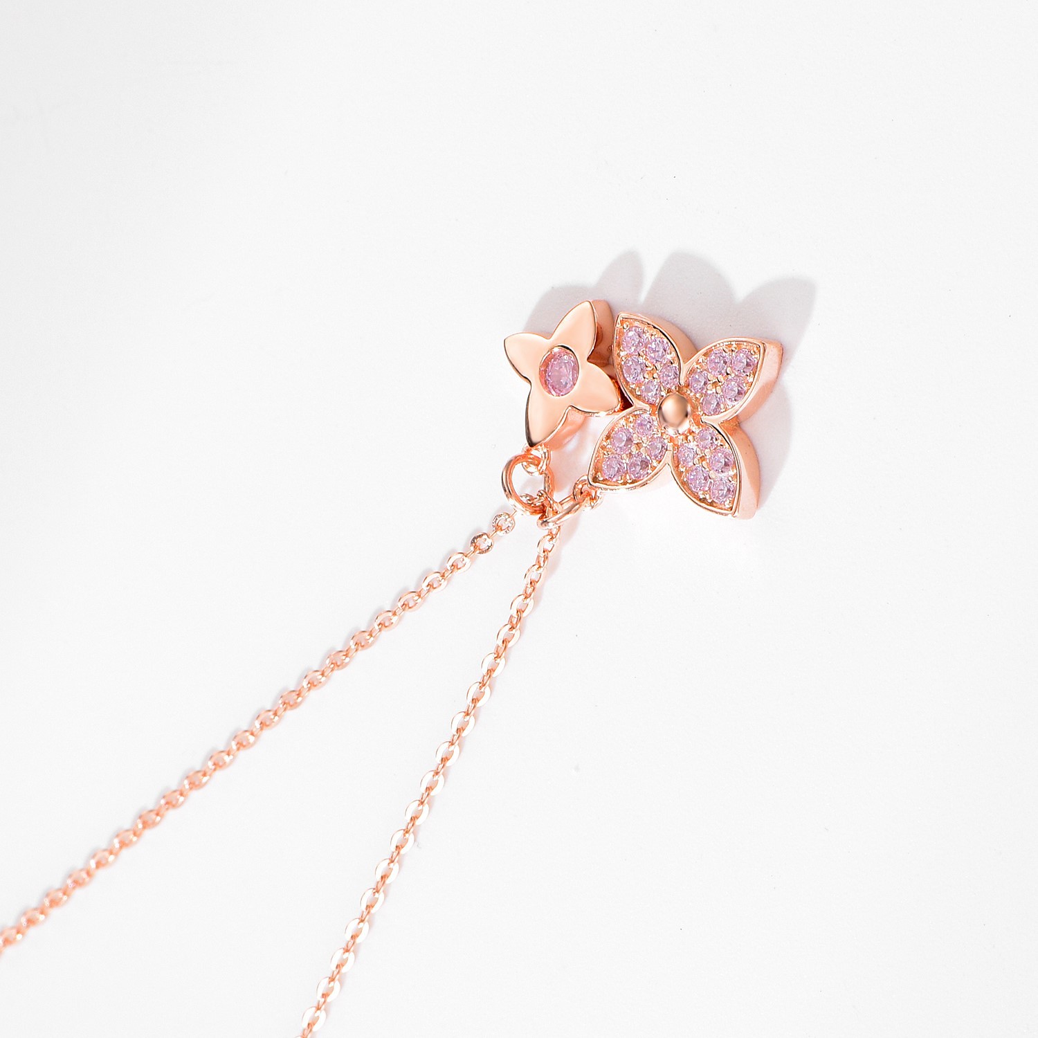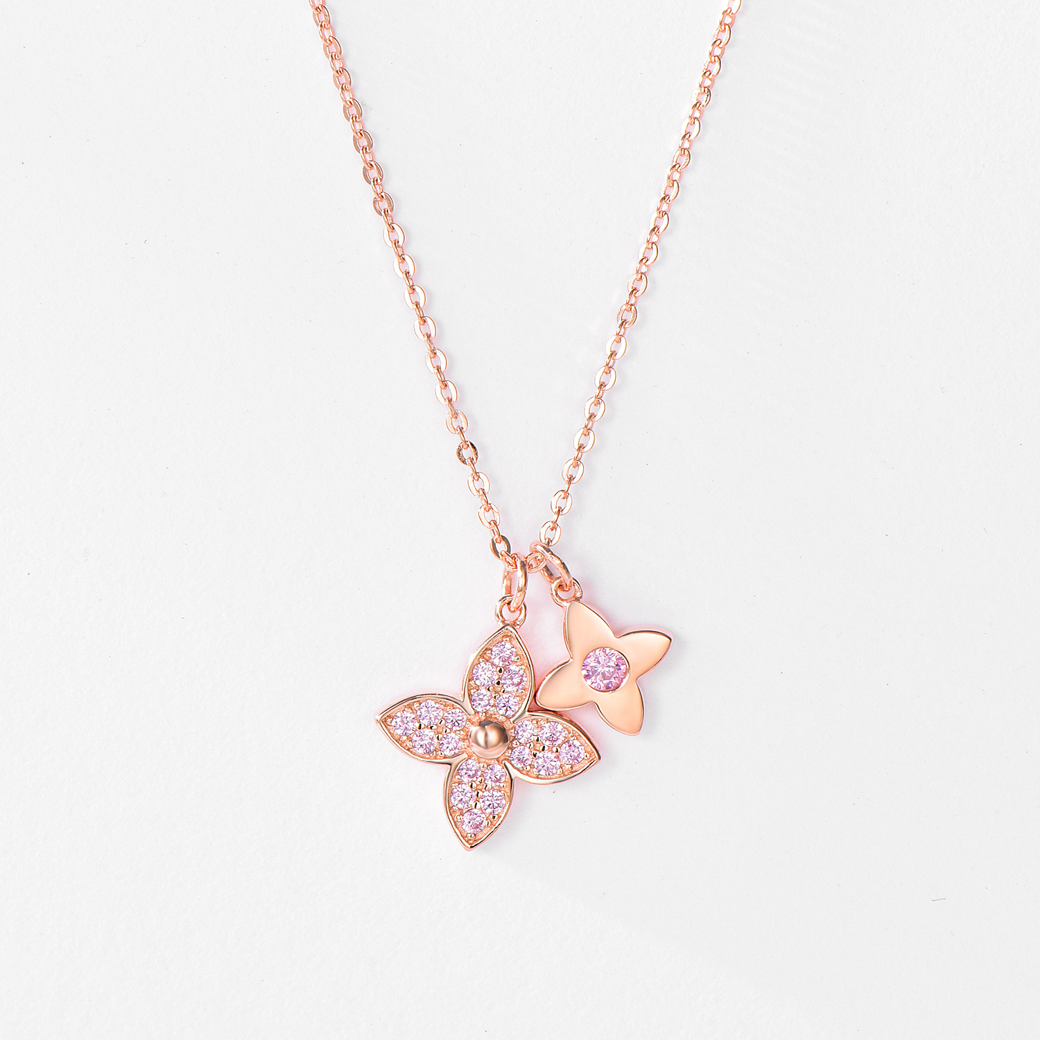 kevkev新款s925银四叶草双花法式轻奢玫瑰金项链气质夏季锁骨链女