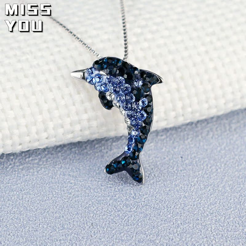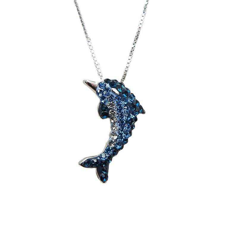 海豚项链s925纯银百搭简约仿水晶渐变蓝色锁骨链少女ins生日礼物