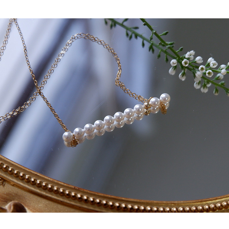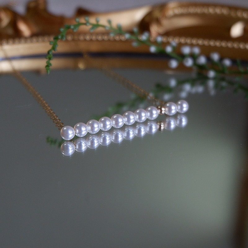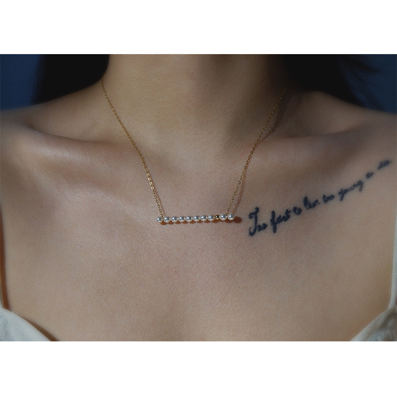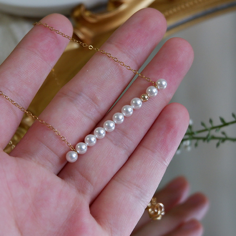 UNELGE原创手作一字施华洛珍珠简约款项链14k包金设计感精致复古