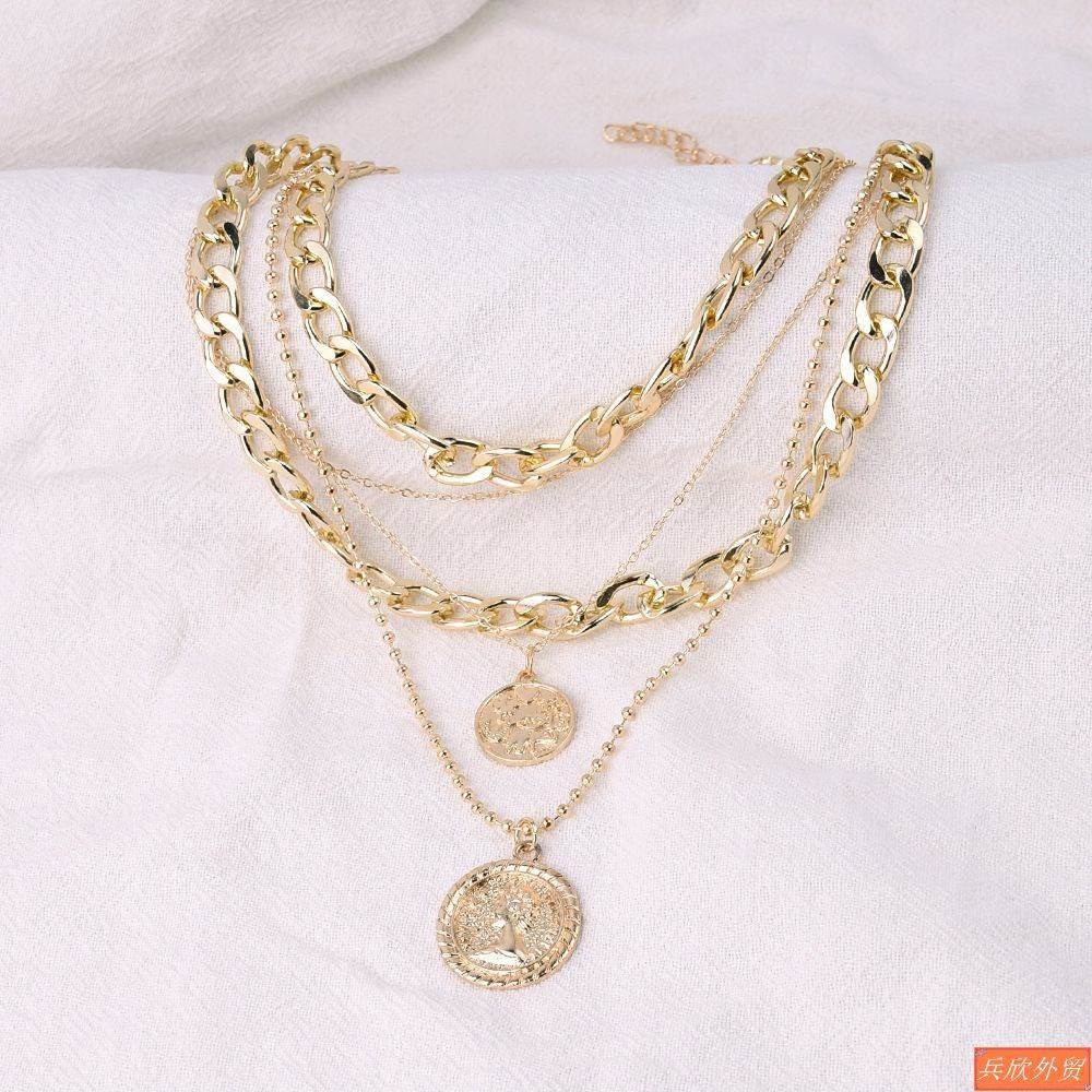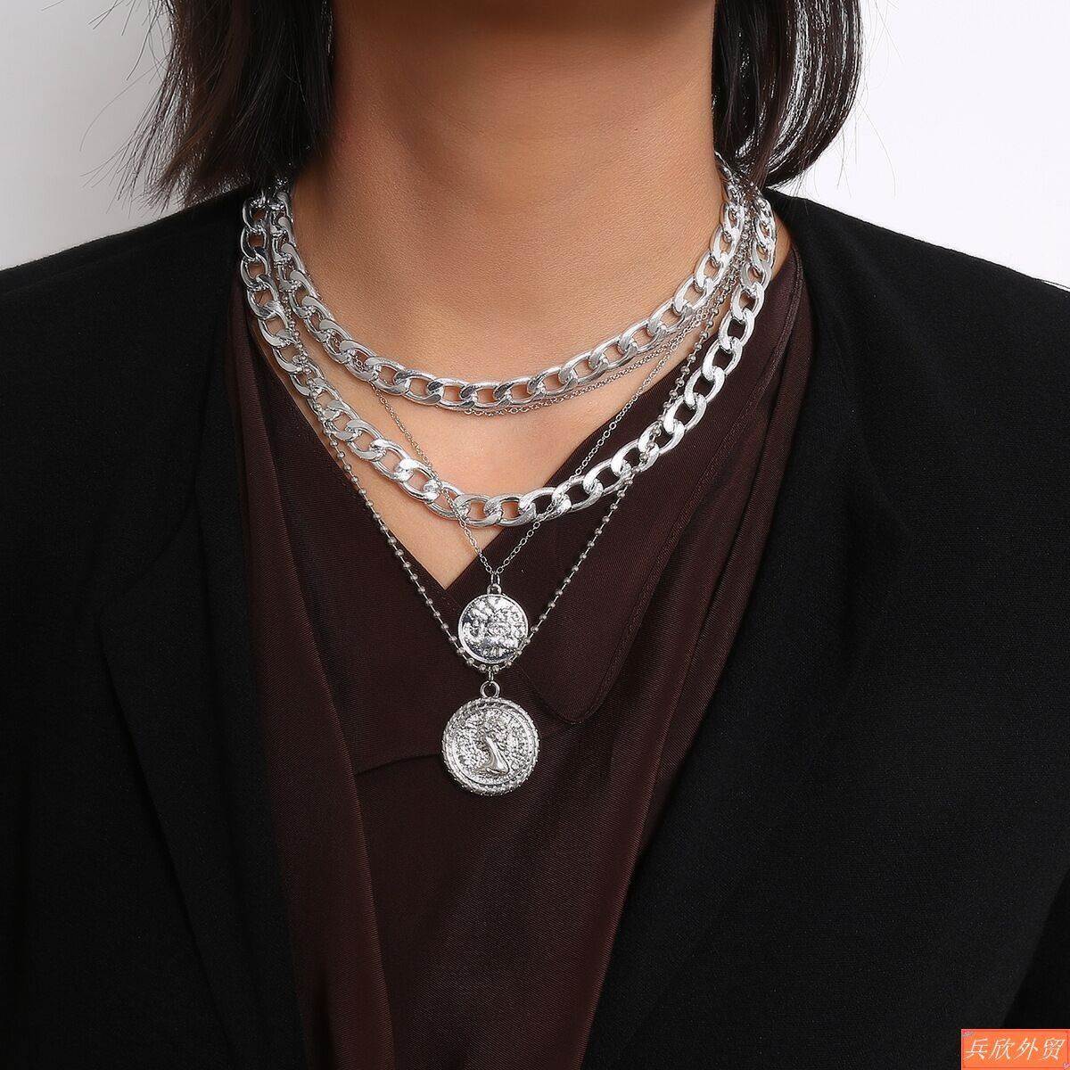 New Jewelry Multilayer round card pendant necklace female女