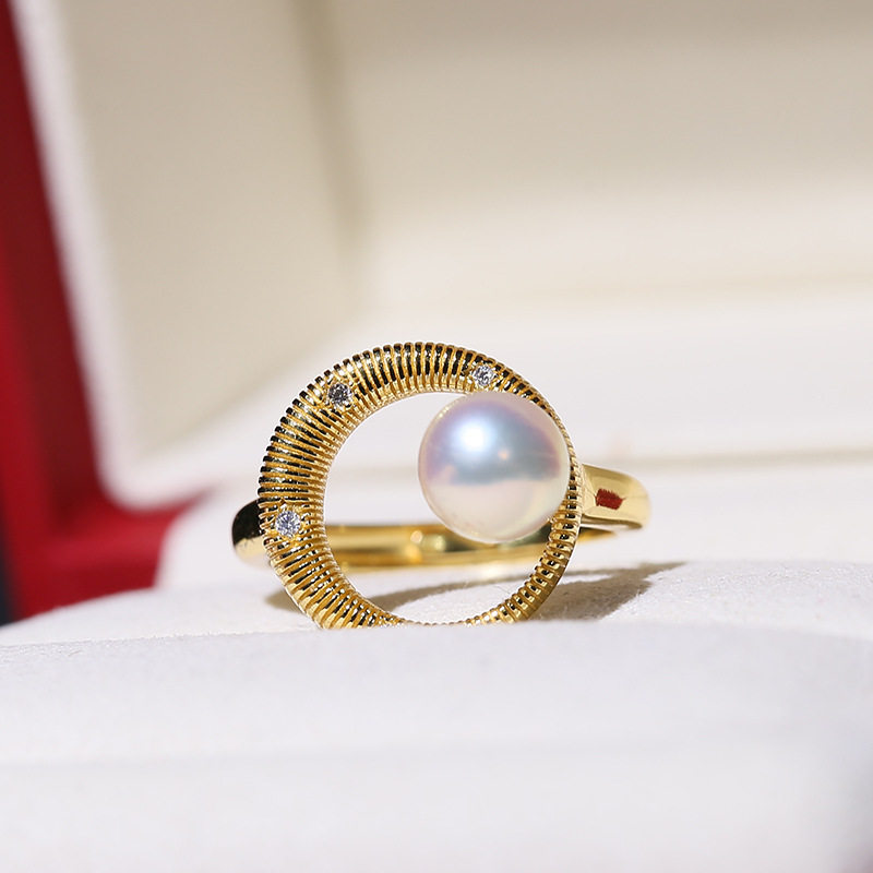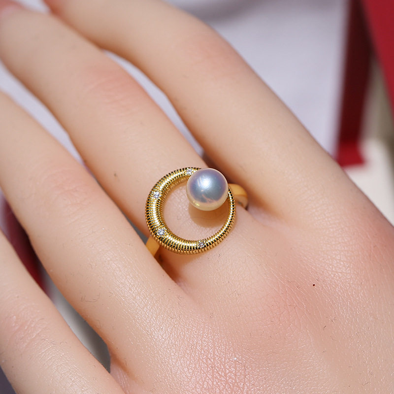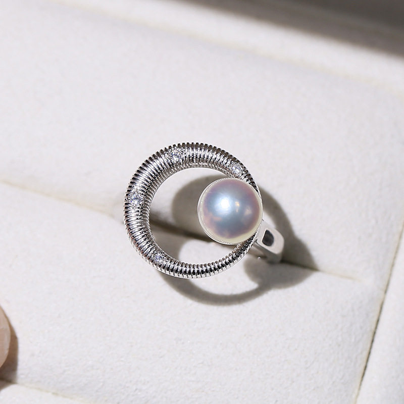 DIY配件 S925纯银珍珠戒指空托 精工大气指环戒托开口指圈6-8mm