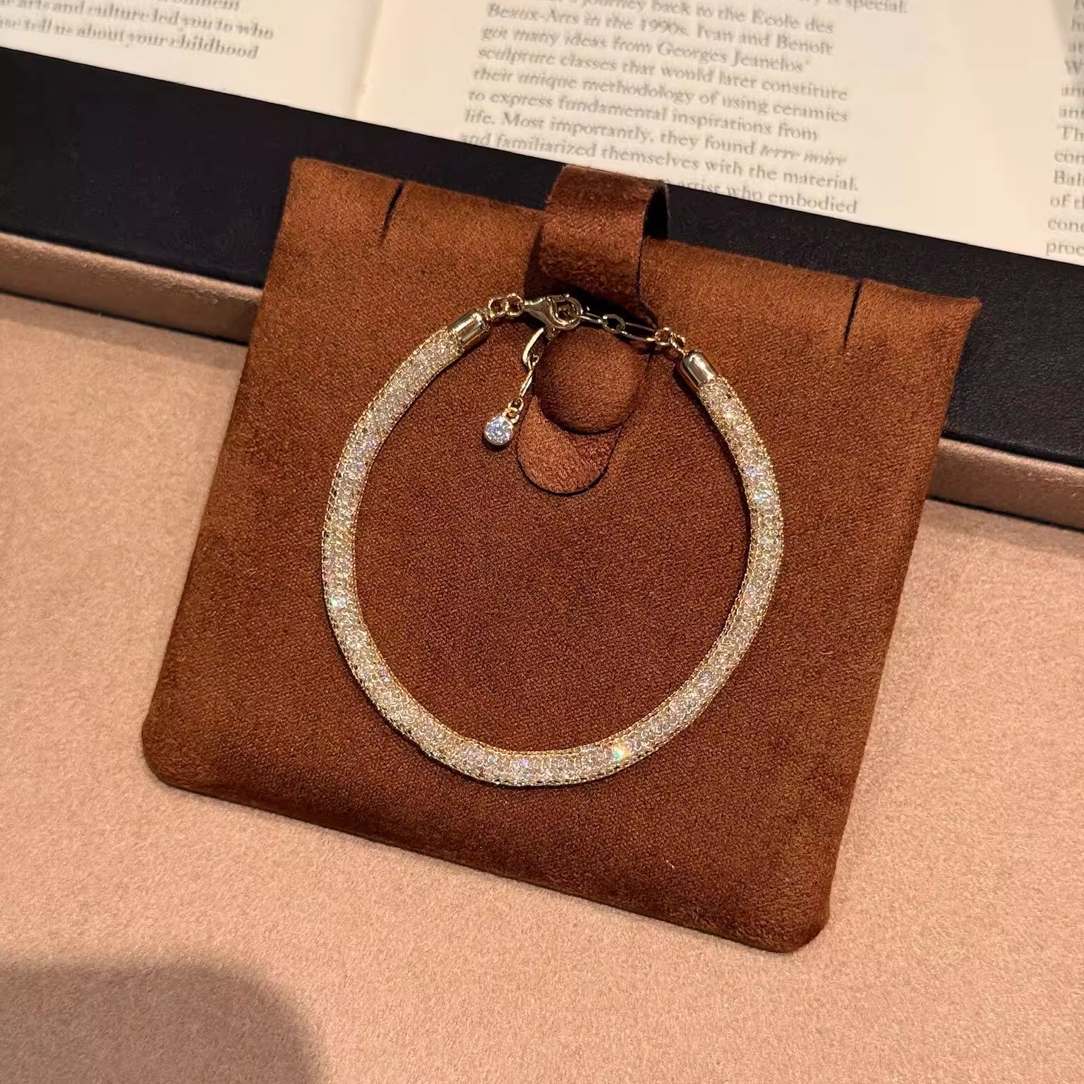 S925纯银!钱袋子碎钻纯银网面手链意大利工艺简约小众设计轻奢