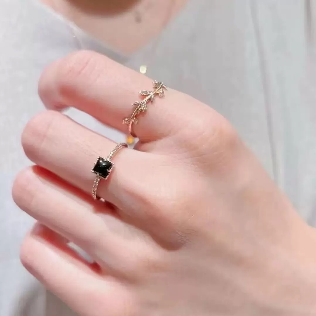 回馈款 日系A家同款小众设计感黑色项链戒指耳钉s925银镀金礼物女