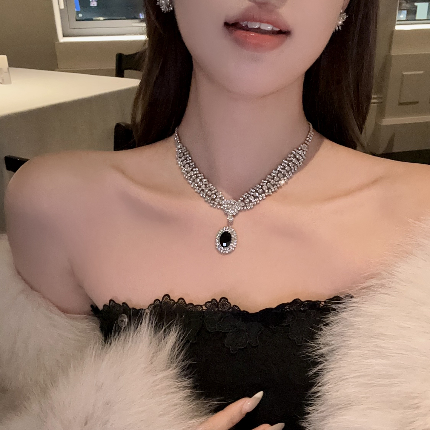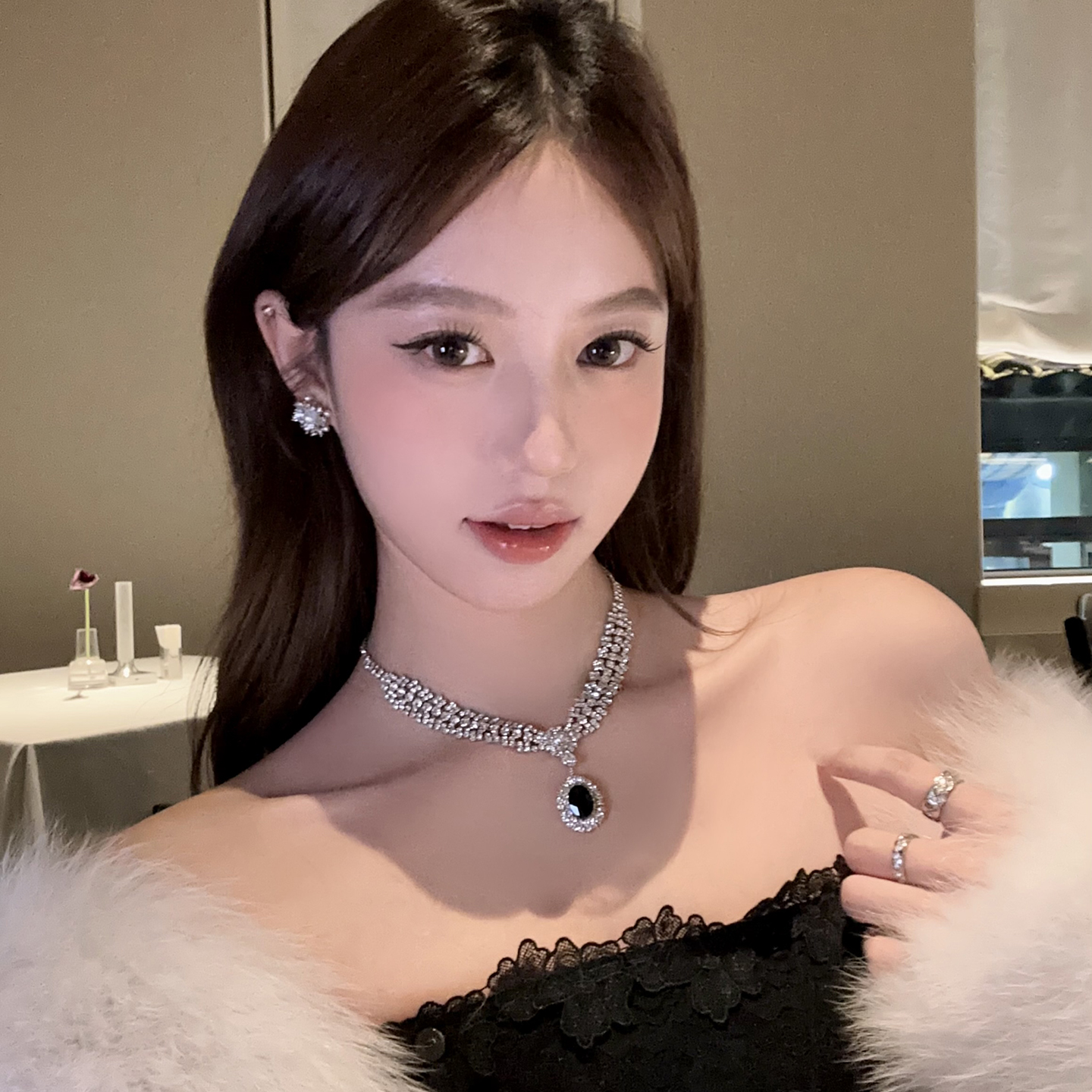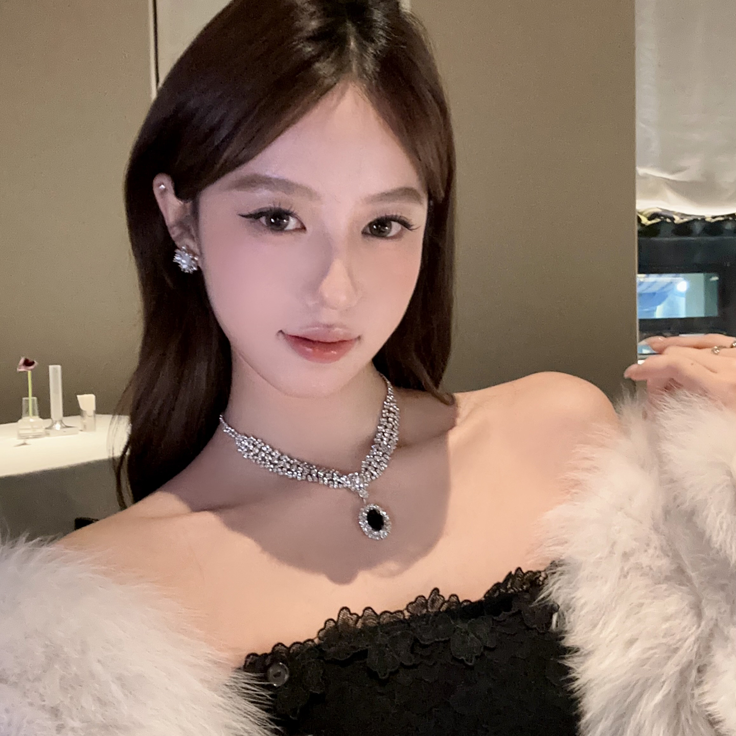 【蜜桃茶】赫敏大小姐复古黑色水钻吊坠choker项链高级感礼服配饰