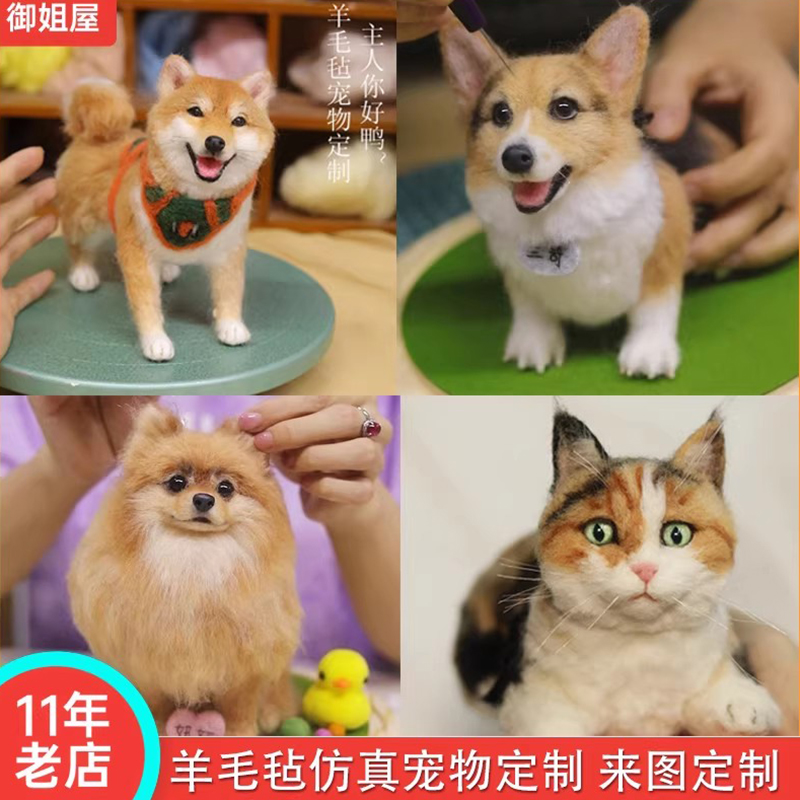 羊毛毡宠物定制仿真狗狗离世纪念猫咪玩偶礼物纯手工泰迪比熊模型