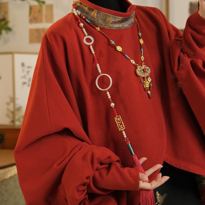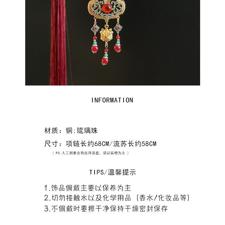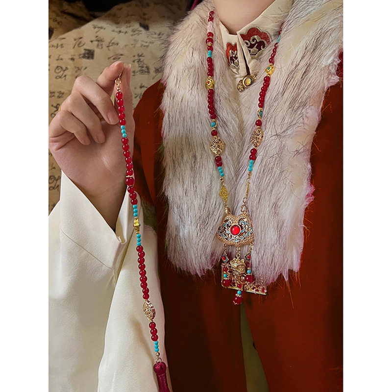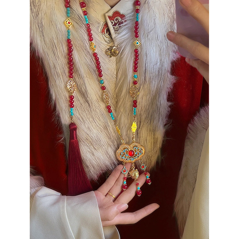 新中式古风平安锁背云红色长璎珞流苏项链女复古国风汉服挂脖配饰