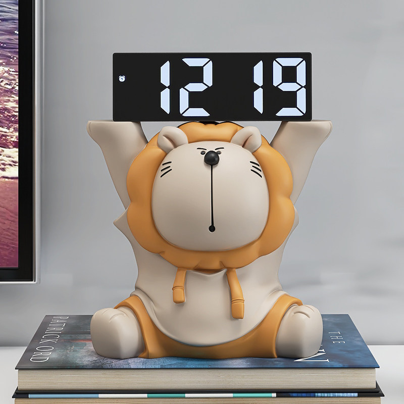 可爱卡通时钟摆件客厅玄关卧室y床头钟表台式摆放式桌面智能电子