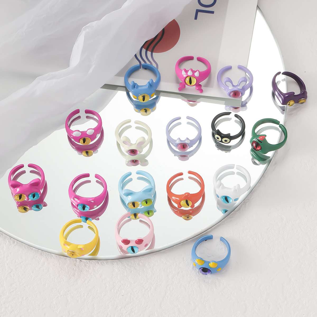 德国童趣可爱小怪兽卡通戒指大眼仔多巴胺超萌搞怪闺蜜开口戒活口