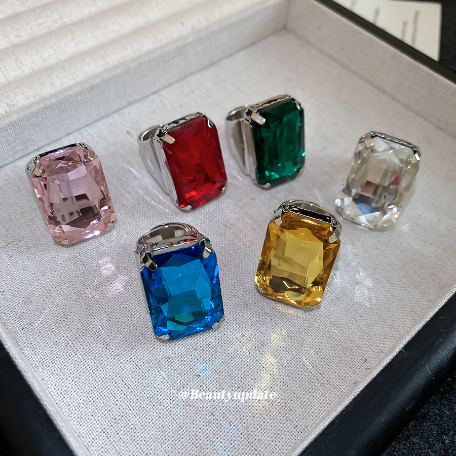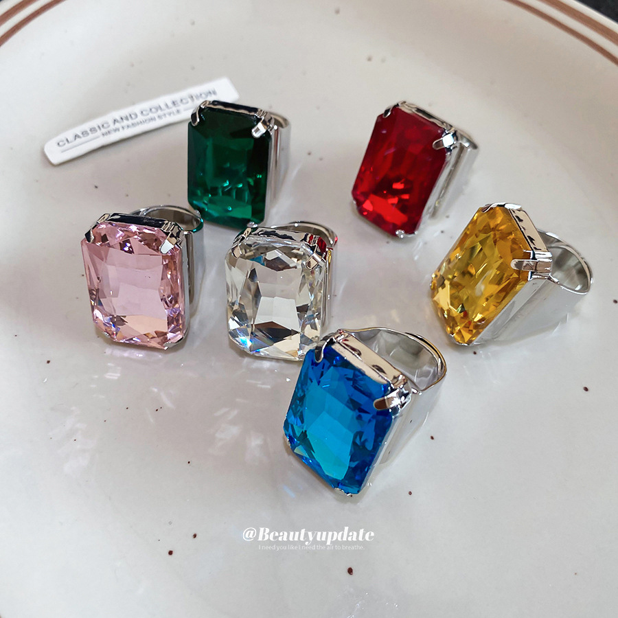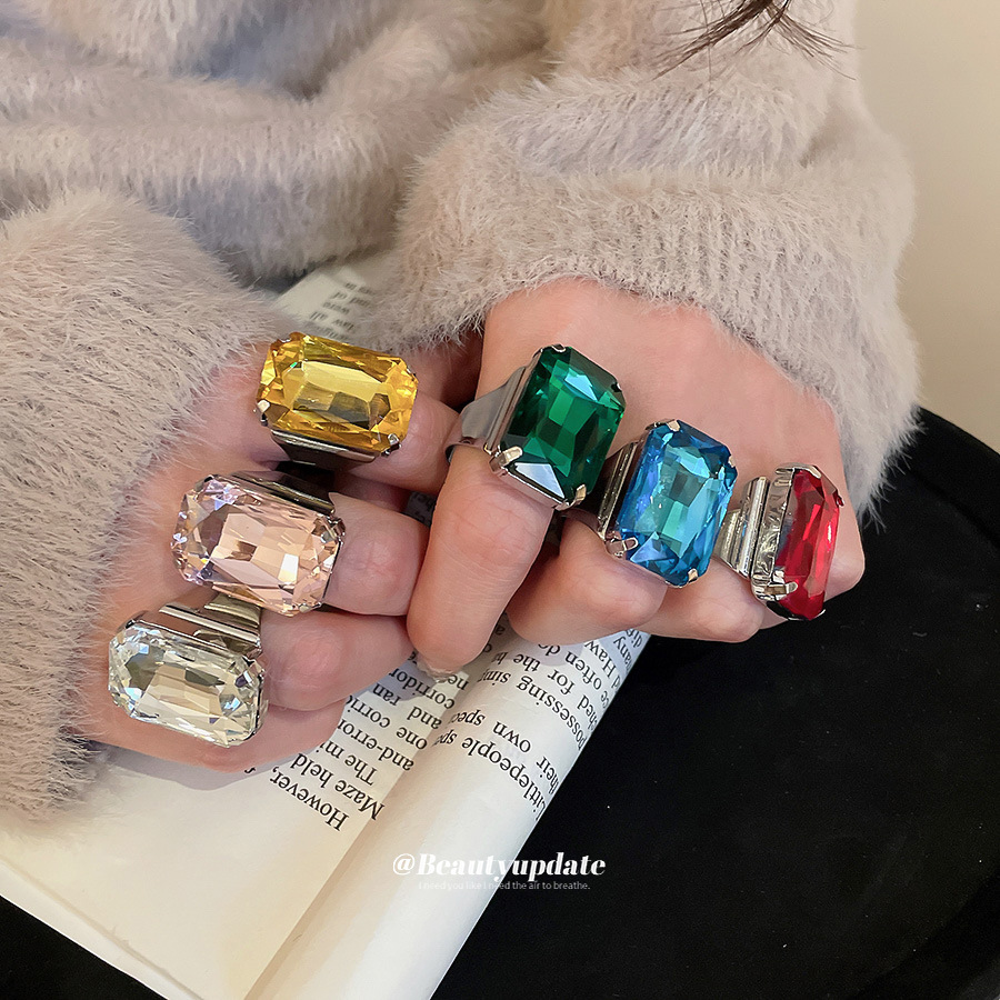 欧美跨境镶钻方形开口戒指个性潮流百搭食指戒轻奢高级感夸张指环