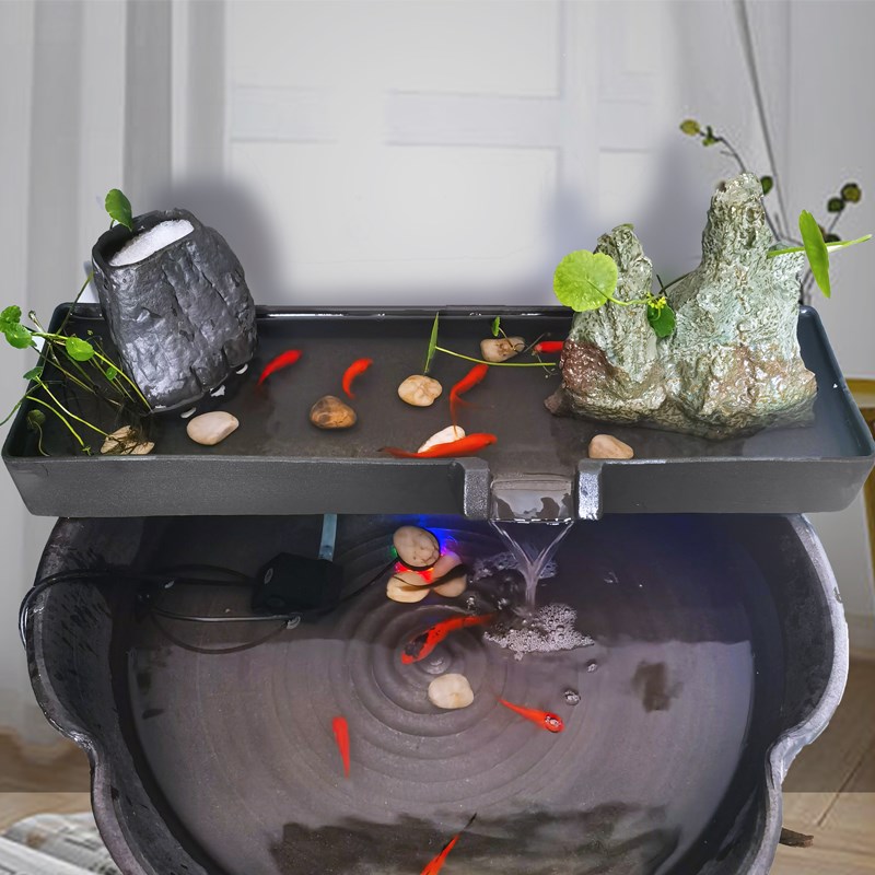 鱼缸流水摆件循环水造景假山石槽水缸配件陶瓷办公室装饰开业礼品