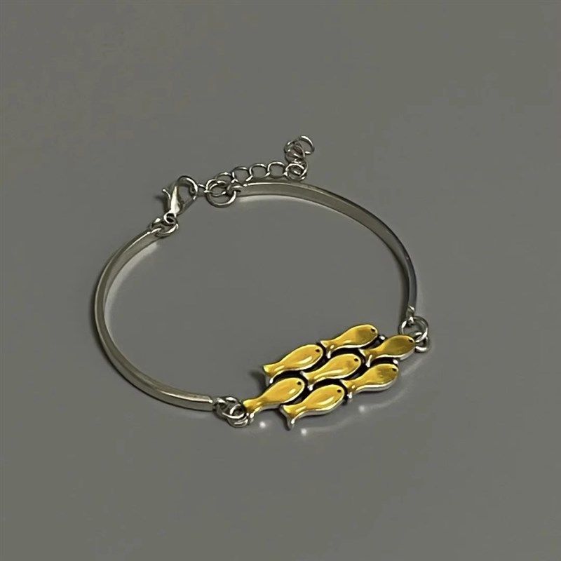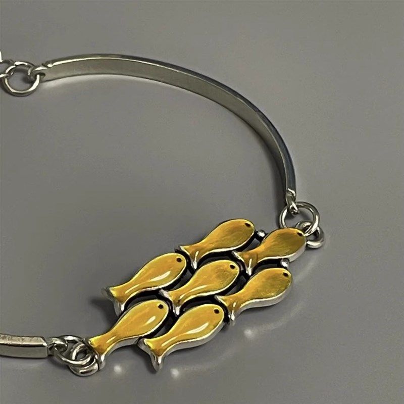 新中式复古金蓝色小鱼半镯拼接手链女轻奢小众精致手镯高级感手饰