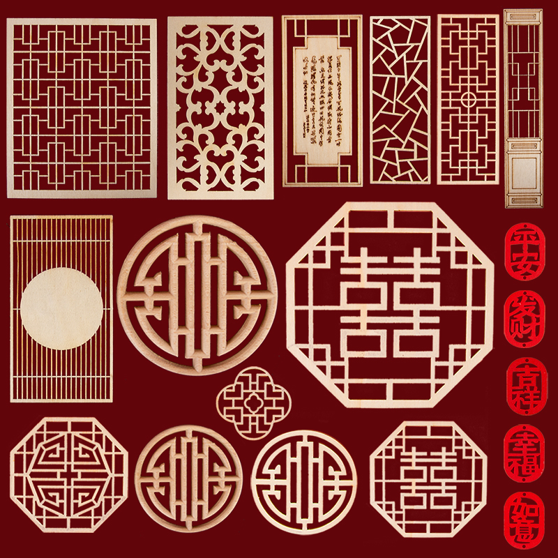 寿宴婚礼茶歇开业新中式甜品台装饰红色中式圆形木雕屏风蛋糕摆件
