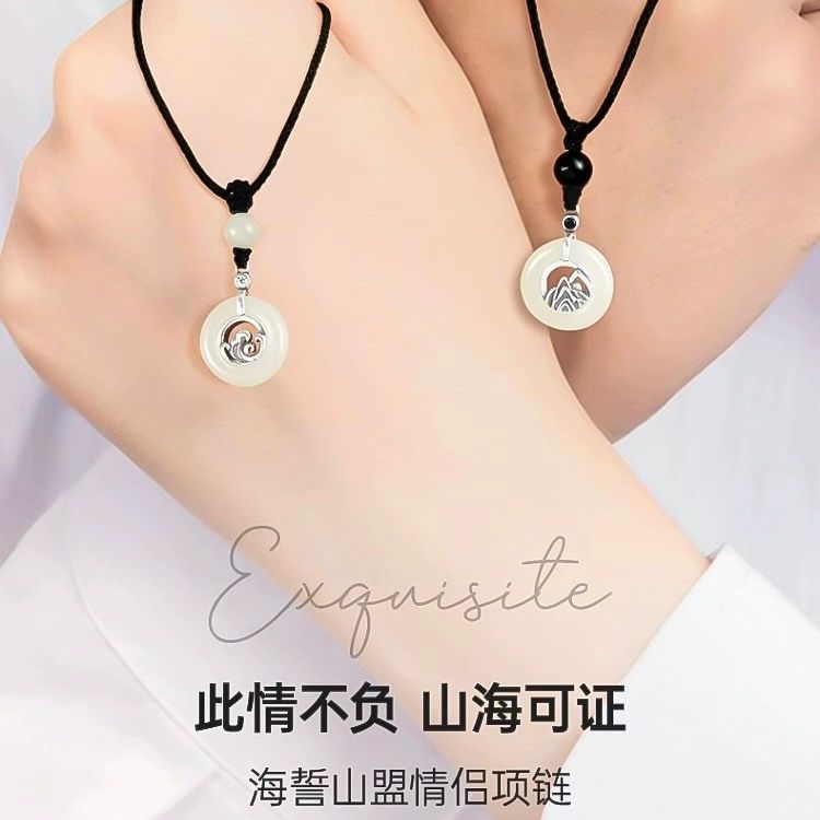 足银999和田玉平安扣项链吊坠女海誓山盟纯银定情侣信物情人节礼